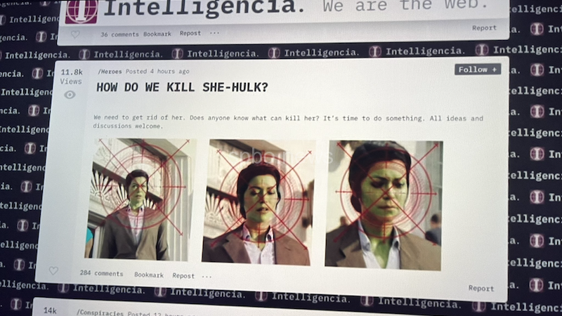 Quay lại sự việc Nikki phát hiện ra thế lực đang nhắm tới She-Hulk và báo động cho cô bạn thân, chúng chính là tổ chức Intelligencia với khẩu hiệu đáng sợ “Làm thế nào chúng ta có thể giết được She-Hulk?” đã chứng minh bộ phim đang dần trở nên “tối màu” hơn.
