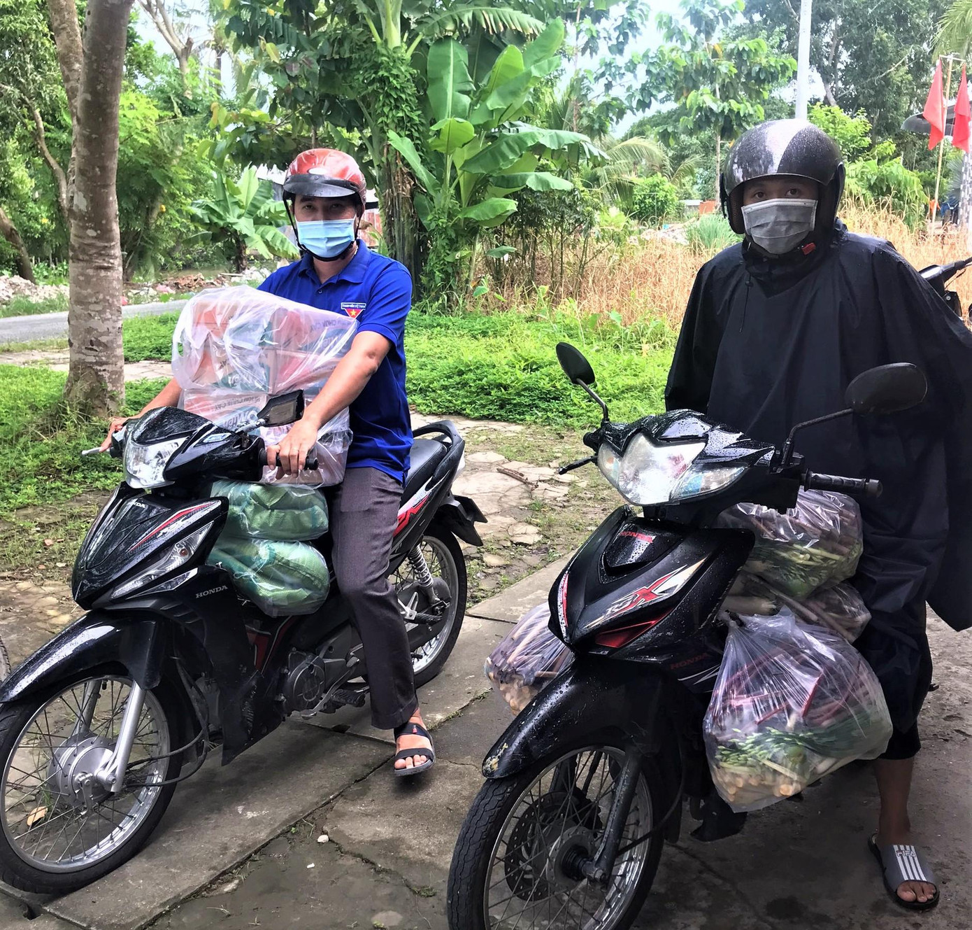 | Đoàn viên, thanh viên chạy xe máy mua hàng hóa cho người dân bị cách ly tại nhà. |