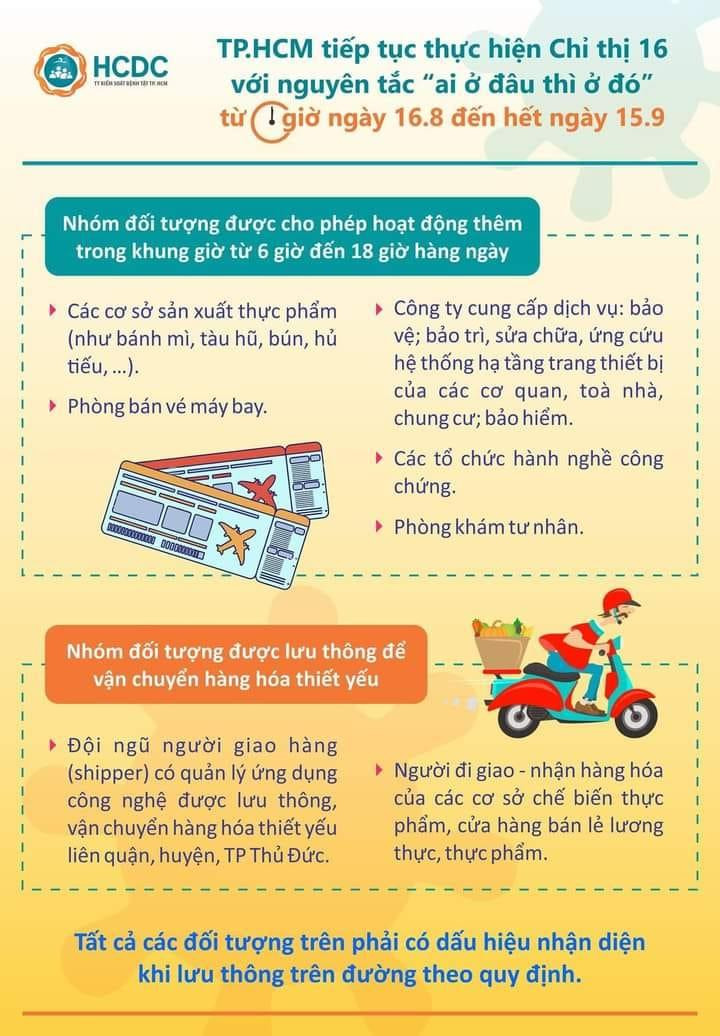 Theo thông báo từ Trung tâm kiểm soát bệnh tật TP.HCM (HCDC), đội ngũ giao hàng sẽ được hoạt động trong khung giờ 6h đến 18h hằng ngày để vận chuyển hàng hóa thiết yếu liên quận, huyện và thành phố Thủ Đức.