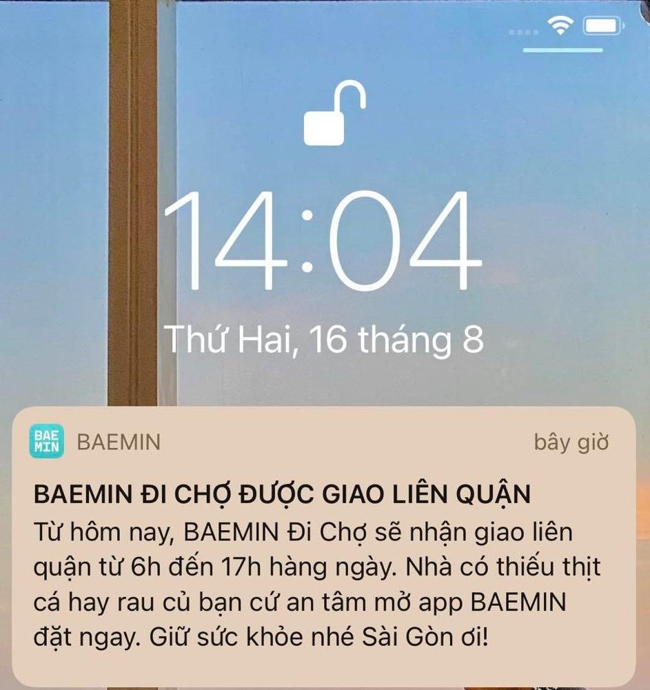 Các ứng dụng như Grab, Gojek, Baemin, AhaMove cũng đã gửi thông báo đến người dùng có thể đặt dịch vụ đi chợ hộ, giao lương thực hoặc các mặt hàng thiết yếu liên quận, huyện và thành phố Thủ Đức.