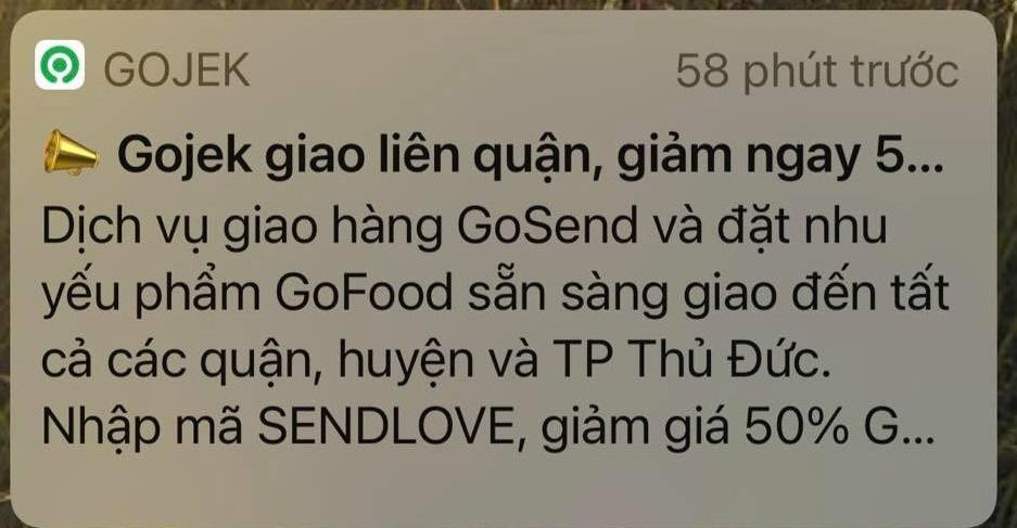 | Ứng dụng giao hàng gửi thông báo cho người dùng tại TP.HCM. |