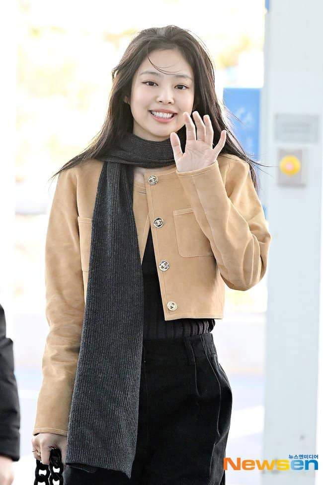 Trước đó, tại sân bay khởi hành sang Pháp, “nàng thơ” Chanel chiêu đãi người hâm mộ với tạo hình thanh lịch, rạng rỡ. Jennie BLACKPINK trẻ trung với áo khoác da lộn màu be, giày thể thao đen và túi xách thuộc BST Pre-Collection Xuân Hè 2024.