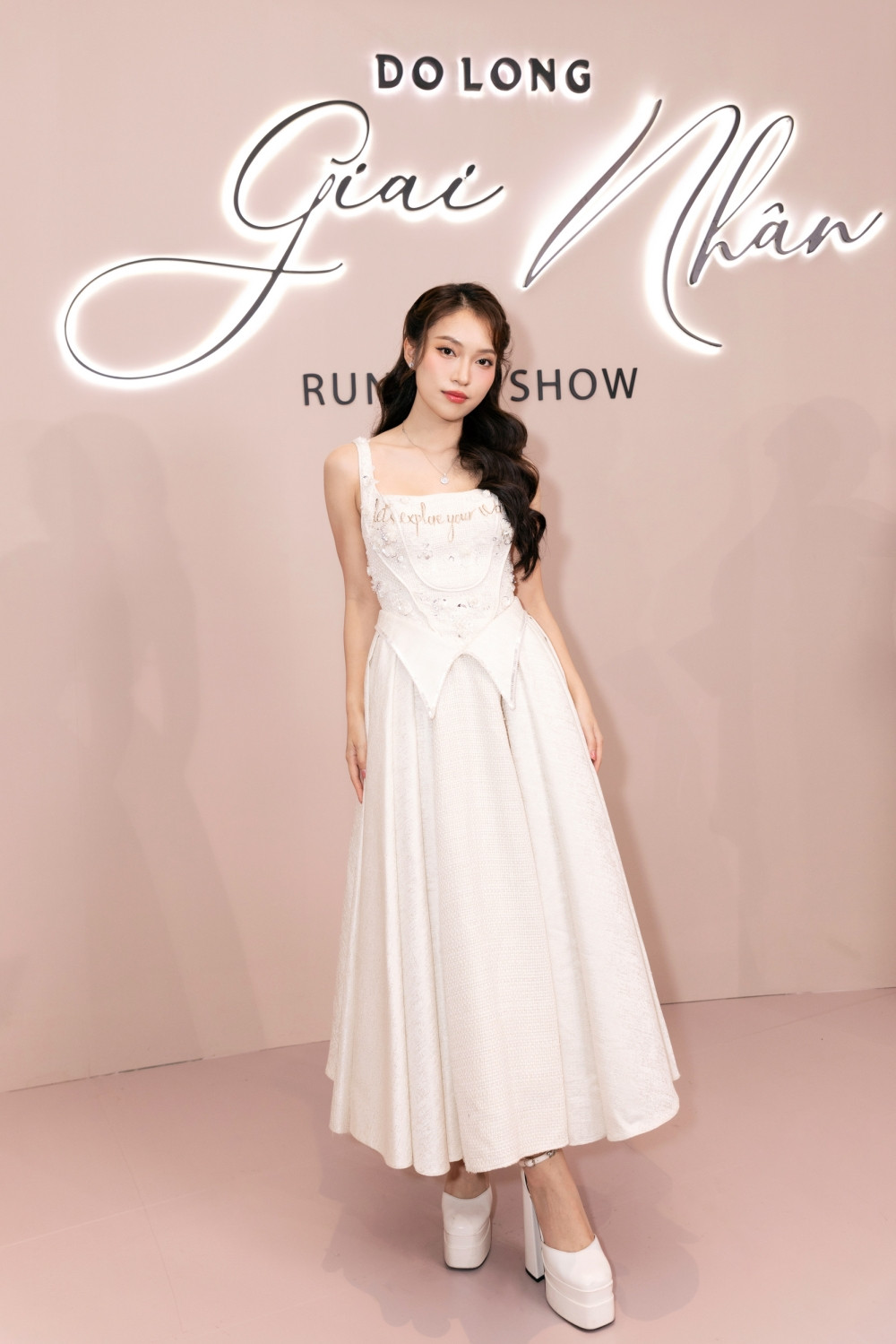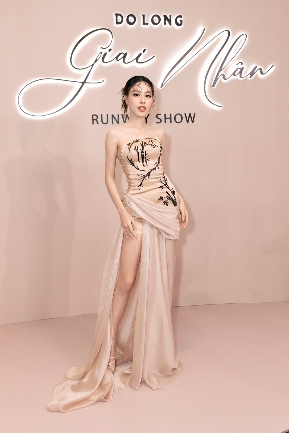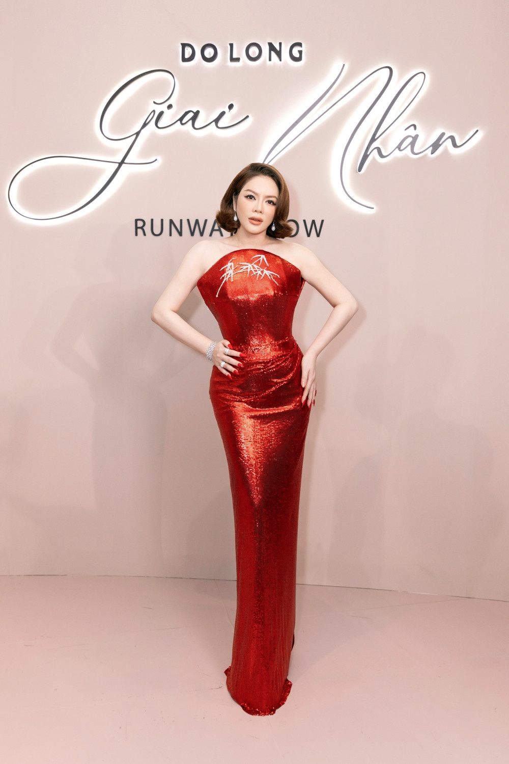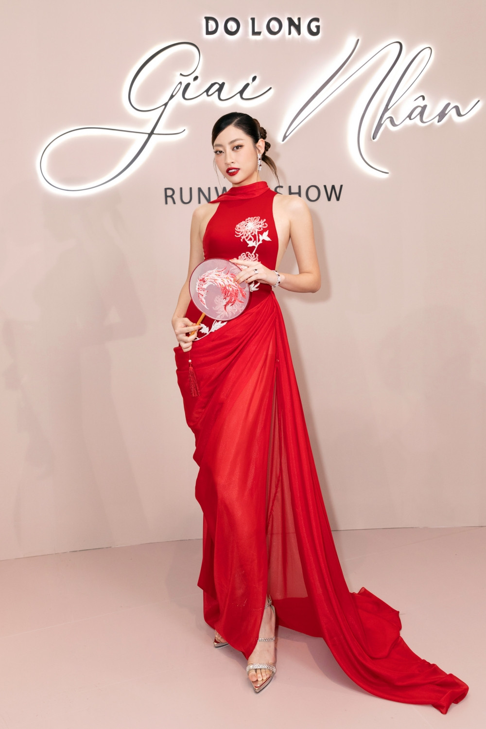 Hoa hậu Đoàn Thiên Ân là một trong những người bạn thân thiết của NTK Đỗ Long. Cô ghi điểm bởi set đồ mang tông đỏ có điểm nhấn dập ly.