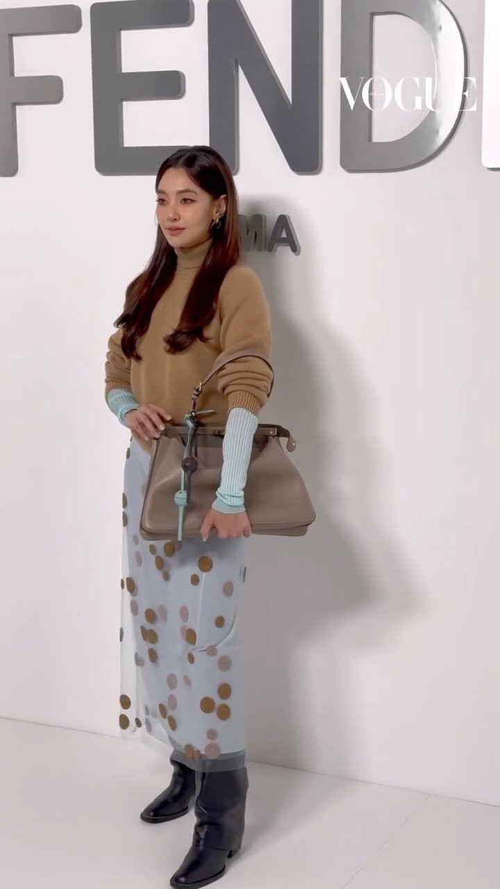 Bella Campen - Đại sứ Fendi tại Thái Lan được mời tham dự sự kiện ra mắt BST mới. Nữ diễn viên người Thái gốc Anh trẻ trung trong trang phục tông màu xanh nhạt và nâu be. Tuy nhiên, một số ý kiến cho rằng diện mạo của "nữ thần cổ trang" Thái Lan có phần rườm rà, kém tôn dáng.