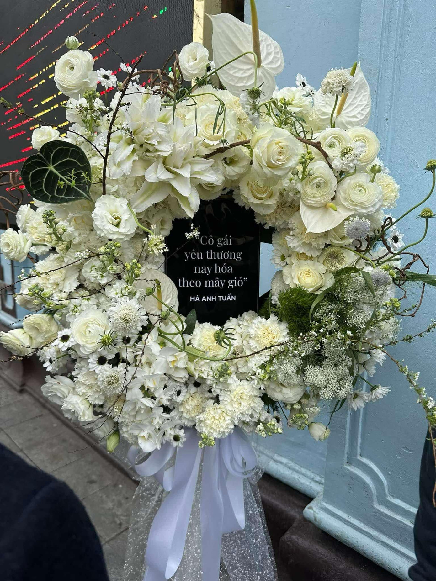 Ngày diễn ra tang lễ, ca sĩ Hà Anh Tuấn gửi vòng hoa đưa tiễn với lời nhắn: “Cô gái yêu thương nay hóa mây gió - Hà Anh Tuấn”.