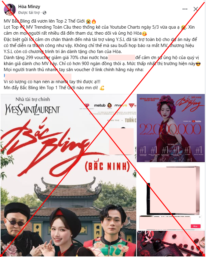 "Những bài đăng như thế này là đang giả mạo tôi. Tôi không bán nước hoa hay cái gì như này cả. Dù là bán hay quảng cáo cái gì cũng là giả mạo hết nên mọi người hết sức cẩn thận. Hòa Minzy chính chủ phải có dấu tick xanh. Nếu thấy bài đăng nào như này hoặc lập nick khác với chiêu trò tương tự, mọi người báo cáo giúp tôi”, Hòa Minzy chia sẻ.