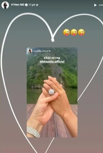 Người mẫu Mâu Thủy đăng ảnh nắm tay H’Hen Niê với chiếc nhẫn ở ngón áp út kèm chú thích: “Chúc mừng”. Khán giả đặt nghi vấn Hoa hậu H’Hen Niê đã nhận lời cầu hôn từ bạn trai nhiếp ảnh.