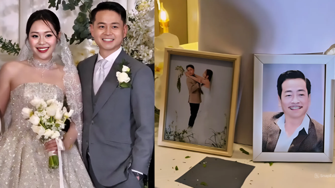 Trong ngày cưới, Hoàng Triều Dương dành một góc trưng bày ảnh, tưởng nhớ bố - NSND Hoàng Dũng. Chi tiết này khiến nhiều khách mời, khán giả xúc động.