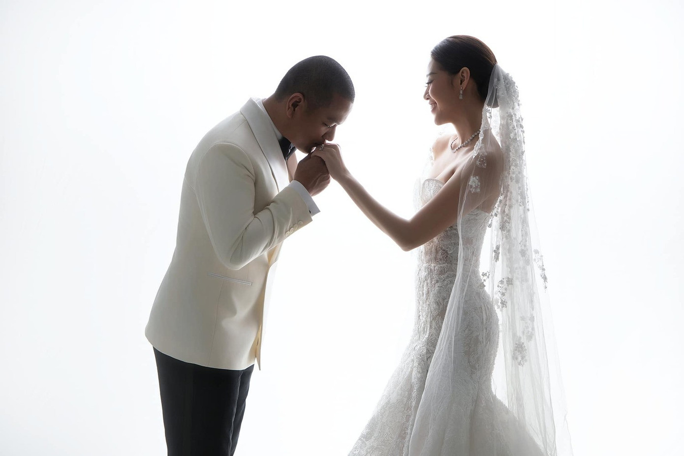 Hoa hậu Khánh Vân chia sẻ bộ ảnh cưới đầu tiên có sự xuất hiện của chồng - nhiếp ảnh gia Long Nguyễn. Trong những bức ảnh được thực hiện ở studio, nhiếp ảnh gia Long Nguyễn diện vest lịch lãm, Khánh Vân mặc váy cúp ngực, đuôi cá khoe trọn đường cong quyến rũ.