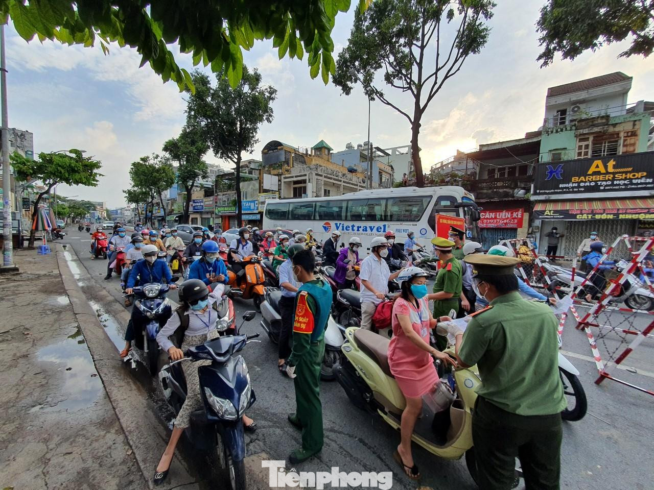 Tiếp đó, thời điểm 7 giờ sáng, tại chốt kiểm soát dịch đường Nguyễn Kiệm, quận Gò Vấp (đoạn Bệnh viện Quân Y 175) lượng người bắt đầu đông do đây là tuyến đường chính dẫn vào trung tâm TP.