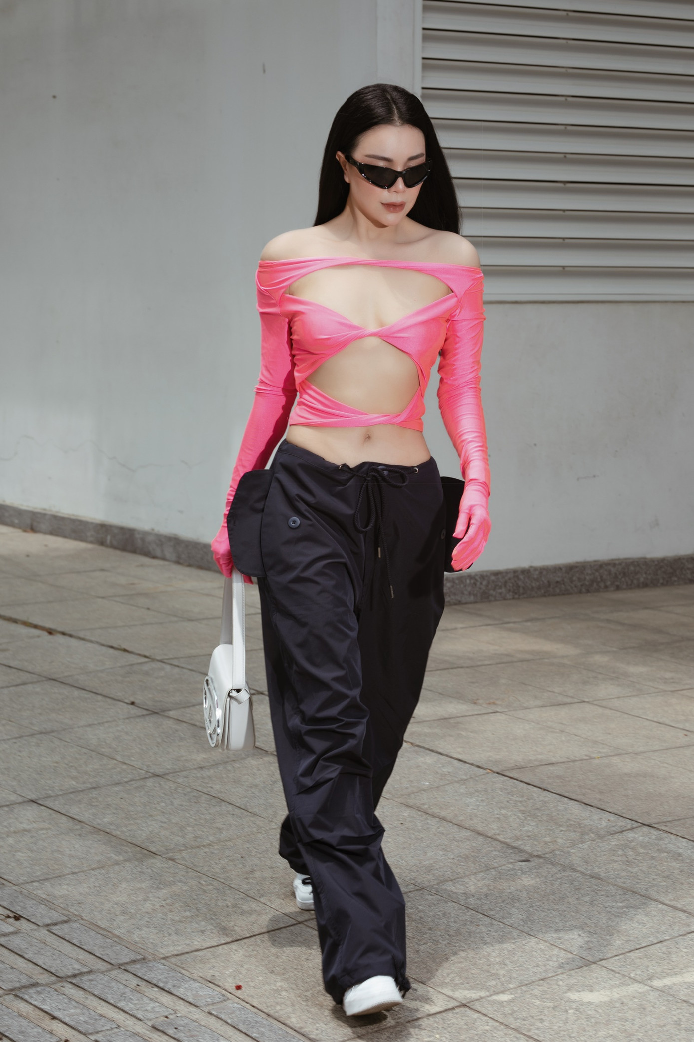 Trà Ngọc Hằng gây ấn tượng với các set đồ vét sang chảnh hoặc váy áo cắt xẻ táo bạo khoe đường cong cơ thể, kết hợp cùng nhiều phụ kiện. Vóc dáng quyến rũ và săn chắc giúp nàng mẫu tự tin biến hóa với nhiều phong cách.