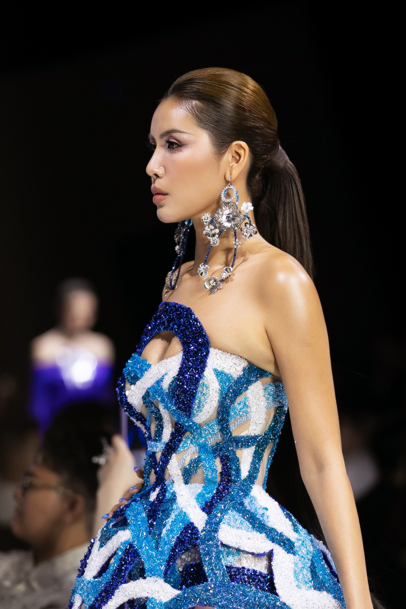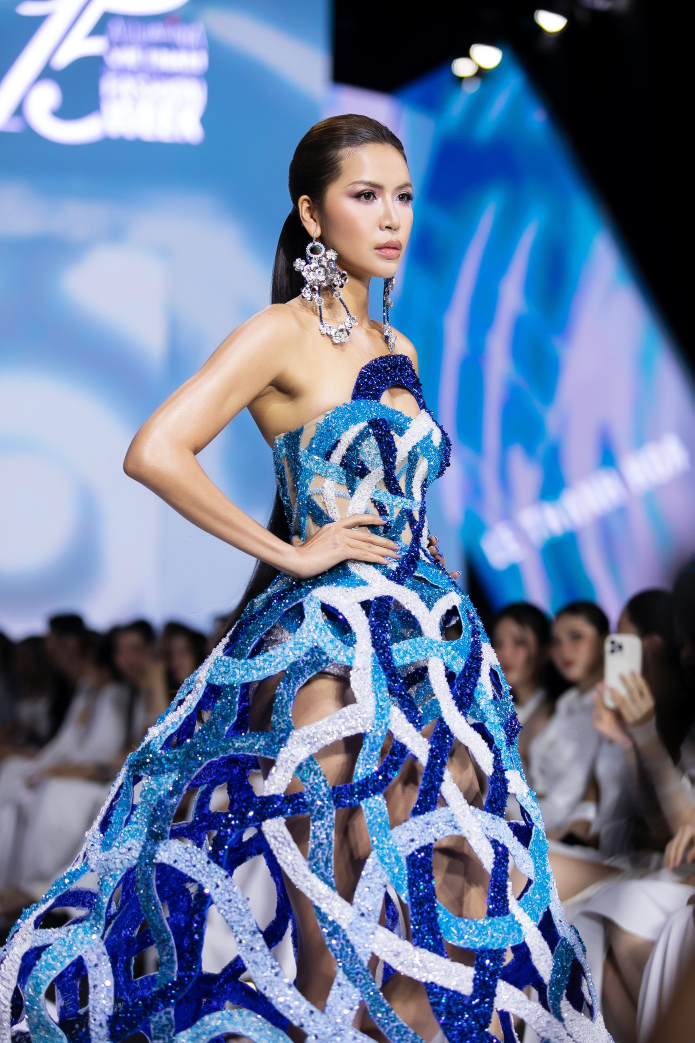 Vừa qua, trong show của nhà thiết kế Lê Thanh Hoà, Minh Tú gây ấn tượng mạnh với những bước catwalk uyển chuyển trong bộ đầm xanh được thiết kế cầu kỳ. Lối trình diễn nhẹ nhàng, sắc lạnh của Minh Tú đã tạo nên hiệu ứng thị giác đẹp mắt và trở thành một trong những màn trình diễn “viral” cao trên mạng xã hội.