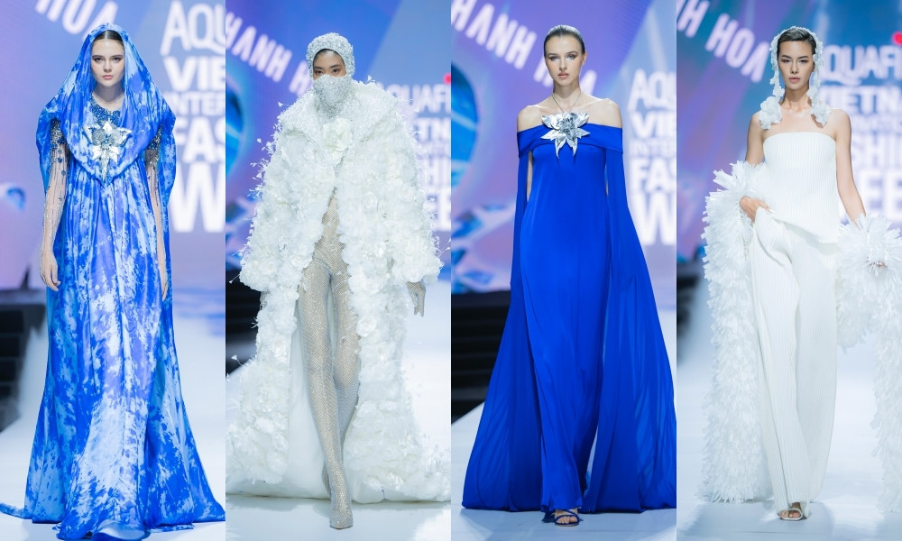 HHTO - Với hai tông màu chủ đạo xanh và trắng, NTK Lê Thanh Hòa đã chiếm trọn trái tim của người yêu thời trang với các thiết kế giàu cảm hứng, mang xu hướng thời trang bền vững trong BST Hoa Trên Sóng Nước.