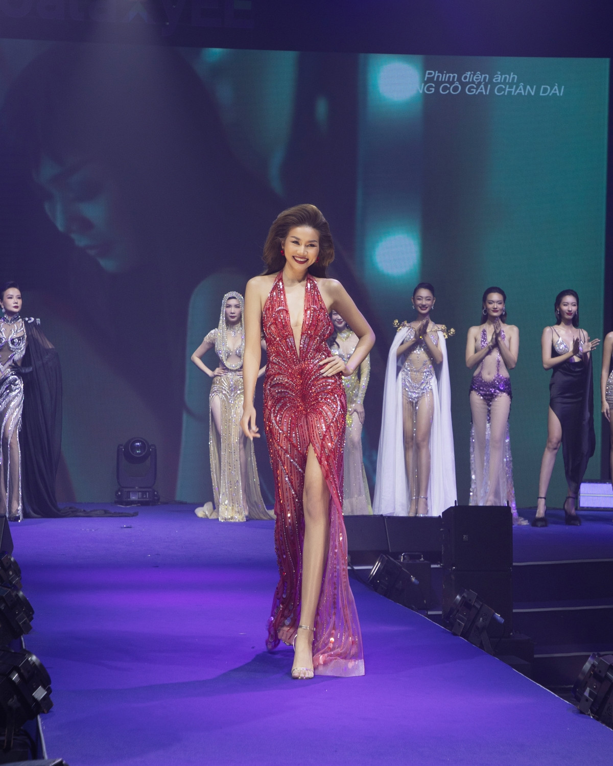 Không chỉ đọ dáng ở thảm đỏ, Thanh Hằng cùng Xuân Lan, Dương Yến Ngọc, Ngọc Nga còn có màn trình diễn catwalk ấn tượng trên sân khấu. Sự xuất hiện của dàn diễn viên Những Cô Gái Chân Dài được khán giả ủng hộ nồng nhiệt.