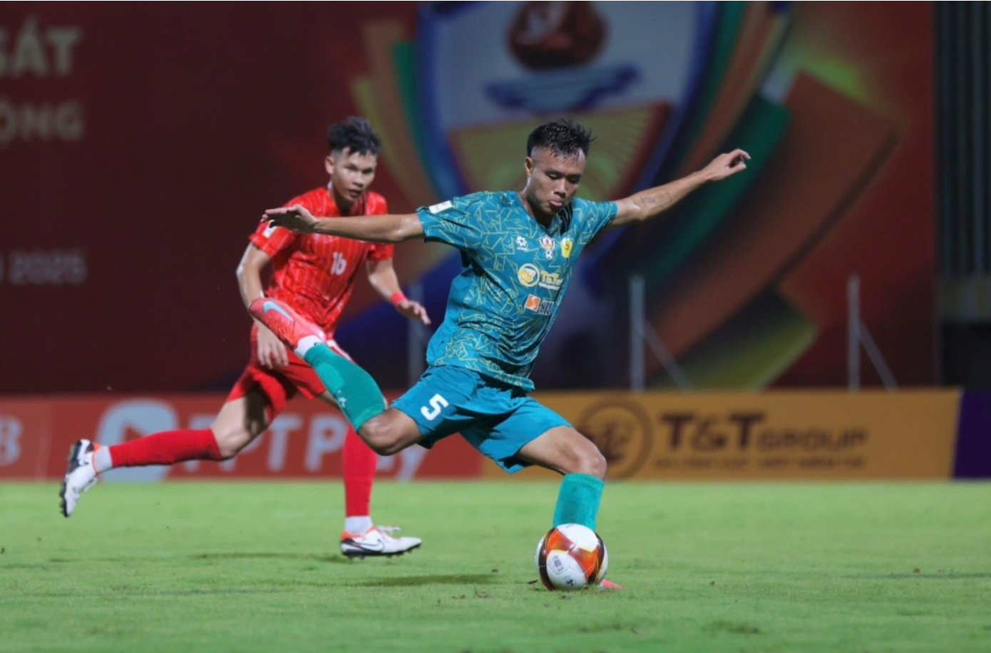 Trong 20 phút đầu tiên, CAND Việt Nam I liên tiếp để thủng lưới 2 bàn. Phải đến cuối hiệp một, đội chủ nhà mới có cơ hội rút ngắn tỷ số. Từ tình huống đá phạt bên cánh phải, Hải Bình băng vào dứt điểm chuẩn xác, giúp CAND Việt Nam I nuôi hy vọng lật ngược.