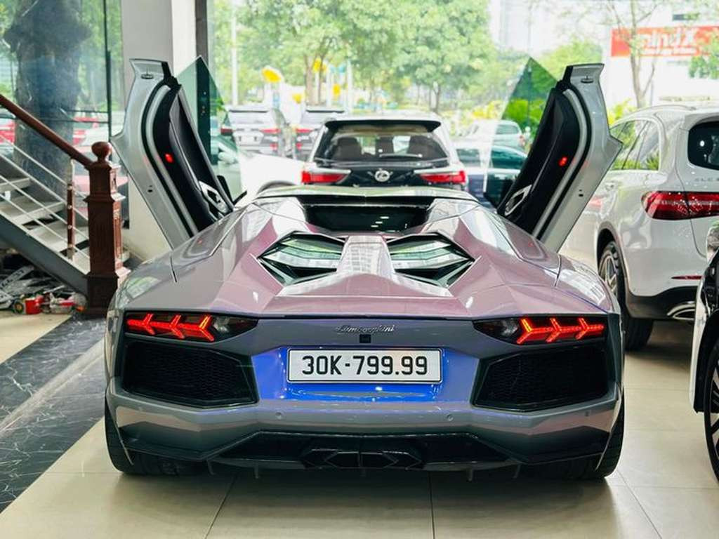 Mới đây, một đại gia gây chú ý khi lắp biển số định danh 30K-799.99 cho chiếc mui trần Lamborghini Aventador. Chiếc siêu xe này hiện được rao bán tại một showroom xe sang ở Hà Nội với giá 22 tỷ đồng, trong đó riêng biển số có giá trên 4 tỷ đồng.
