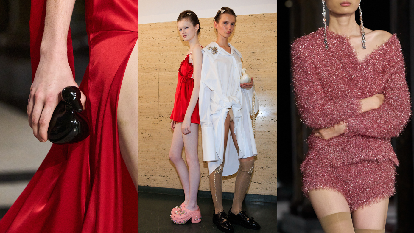 Với nguồn cảm hứng dồi dào từ ba lê, Simone Rocha tiếp tục dùng những chiếc nơ làm điểm nhấn chính chiếc áo choàng khổng lồ, hoặc điểm xuyết trên những đôi giày. Bên cạnh đó, những bông hoa cẩm chướng hồng nhạt là điểm mới mẻ và là họa tiết chính của bộ sưu tập Simone Rocha Spring 2025.