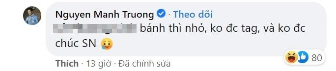 Tuy nhiên, netizen đã phát hiện sự khác biệt không hề nhẹ trong bức hình này. Nếu như Phương Oanh diện cả cây đồ hiệu, trang điểm buộc tóc chỉn chu thì Mạnh Trường lại mặc đồ rất thoải mái với áo thun quần soóc, tóc cũng thả bồng bềnh tự nhiên thay vì vuốt keo bóng bẩy như trên phim. Còn nữa, Phương Oanh cầm trên tay chiếc bánh kem lớn trang trí đẹp mắt thì Mạnh Trường chỉ có một chiếc bánh bé xíu.