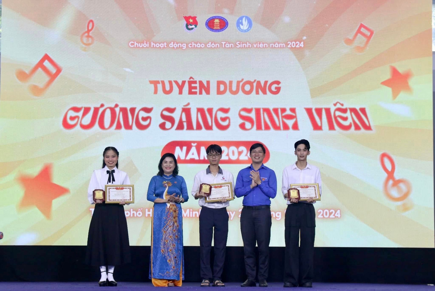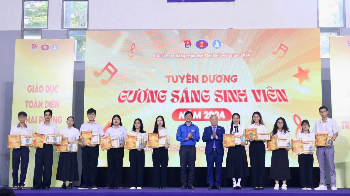 Tại Ngày hội, đại diện nhà trường đã trao 3 suất học bổng thủ khoa và 41 suất học bổng đồng hành cùng sinh viên khó khăn cho tân sinh viên. Ngoài ra, nhà trường đã tuyên dương 14 ‘Gương sáng sinh viên năm 2024’ và tiếp nhận các khoản tài trợ cho Quỹ học bổng Khuyến học Khuyến tài.