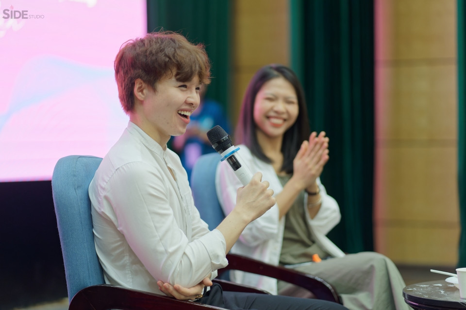 Bên cạnh lắng nghe chia sẻ của diễn giả, các bạn khán giả còn được tham gia giao lưu, đặt câu hỏi trực tiếp tới diễn giả về chủ đề workshop. Hai vị diễn giả đã đưa ra những lời khuyên bổ ích, tư vấn cụ thể cho các bạn mong muốn trở thành một content creator chuyên nghiệp.
