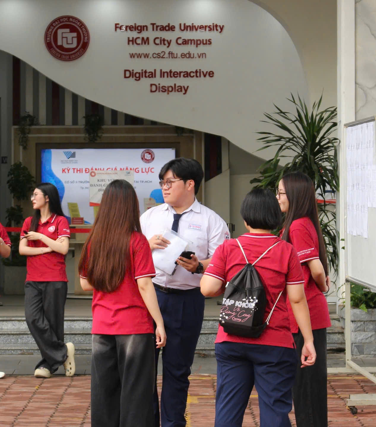 | Nhóm tình nguyện viên hỗ trợ Kỳ thi Đánh giá năng lực lần 2 tại trường ĐH Ngoại thương, Cơ sở II. |