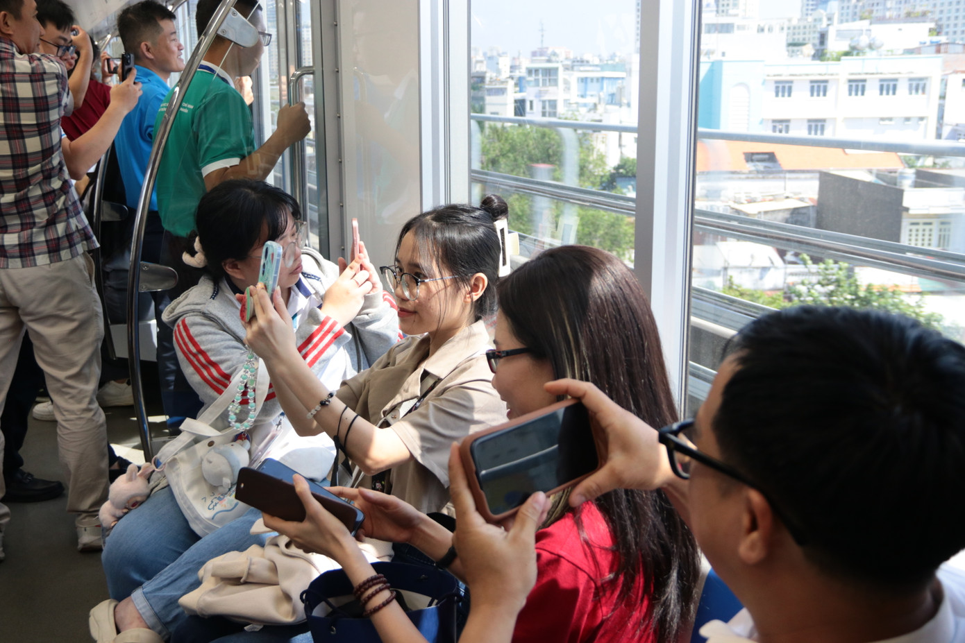 | Sinh viên trường ĐH KHXH&NV, ĐHQG TP. HCM tham gia trải nghiệm tàu điện Metro số 1. |