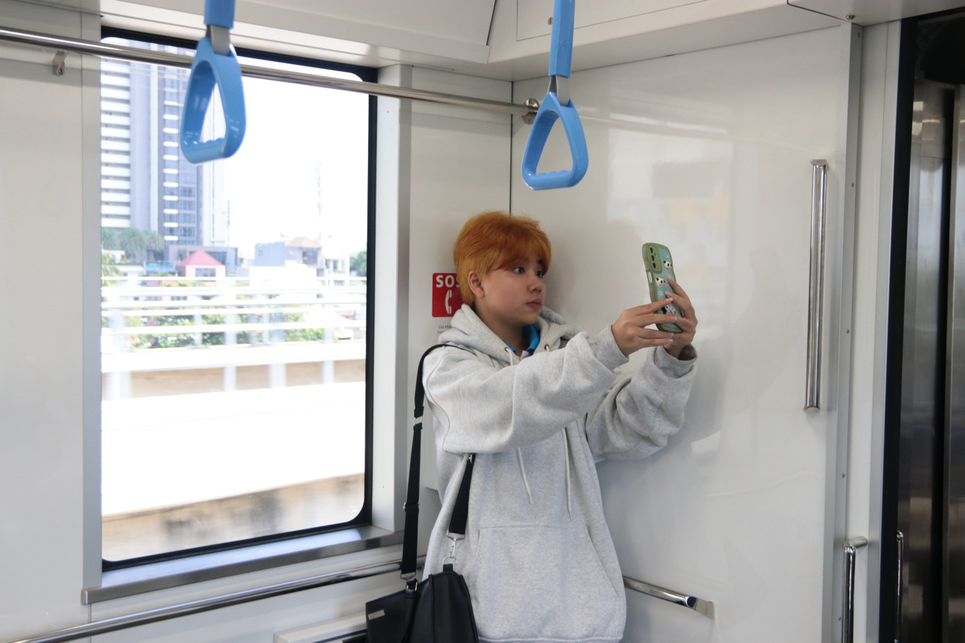 | Nguyễn Quốc Toàn phấn khích khi lần đầu trải nghiệm Metro số 1. |