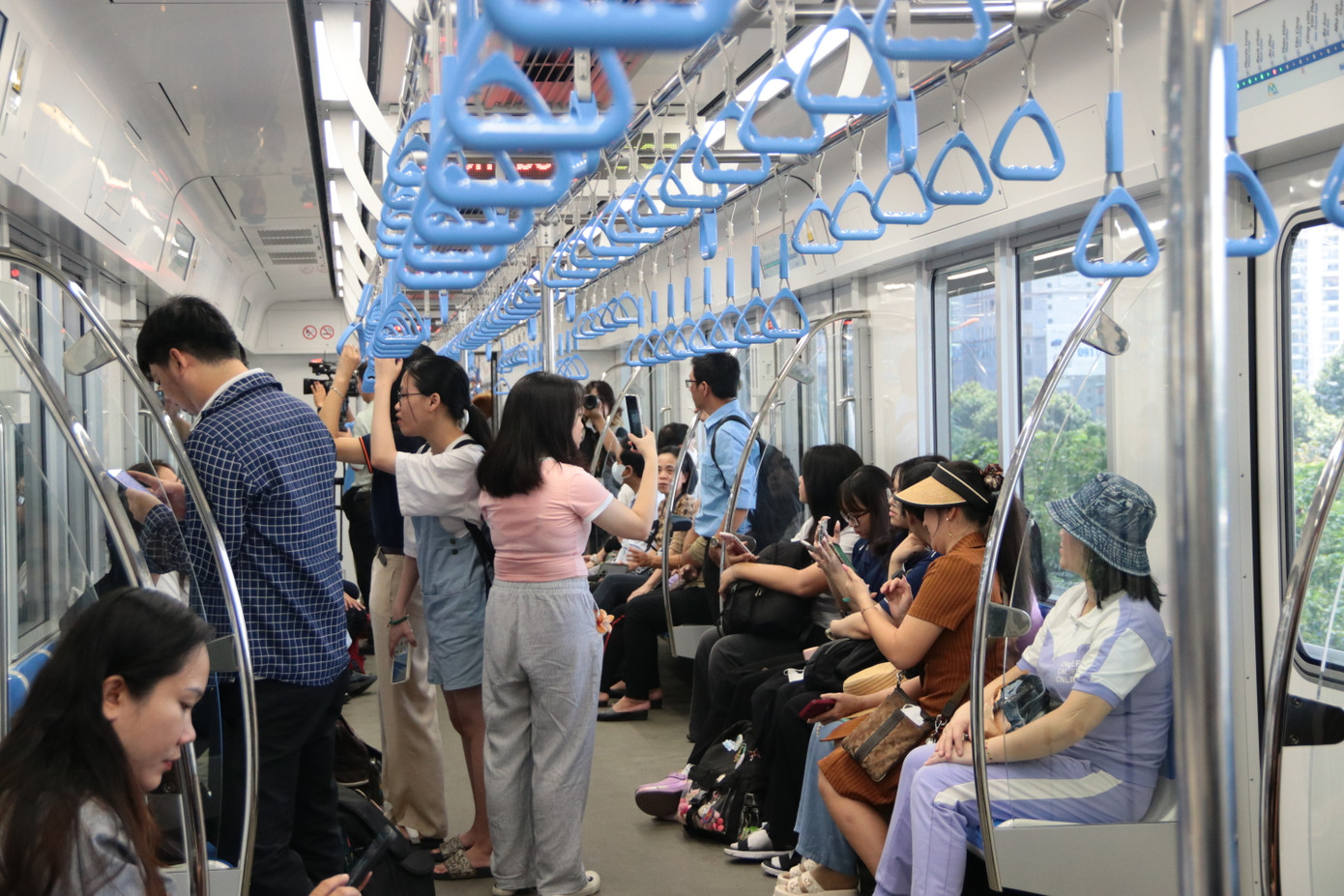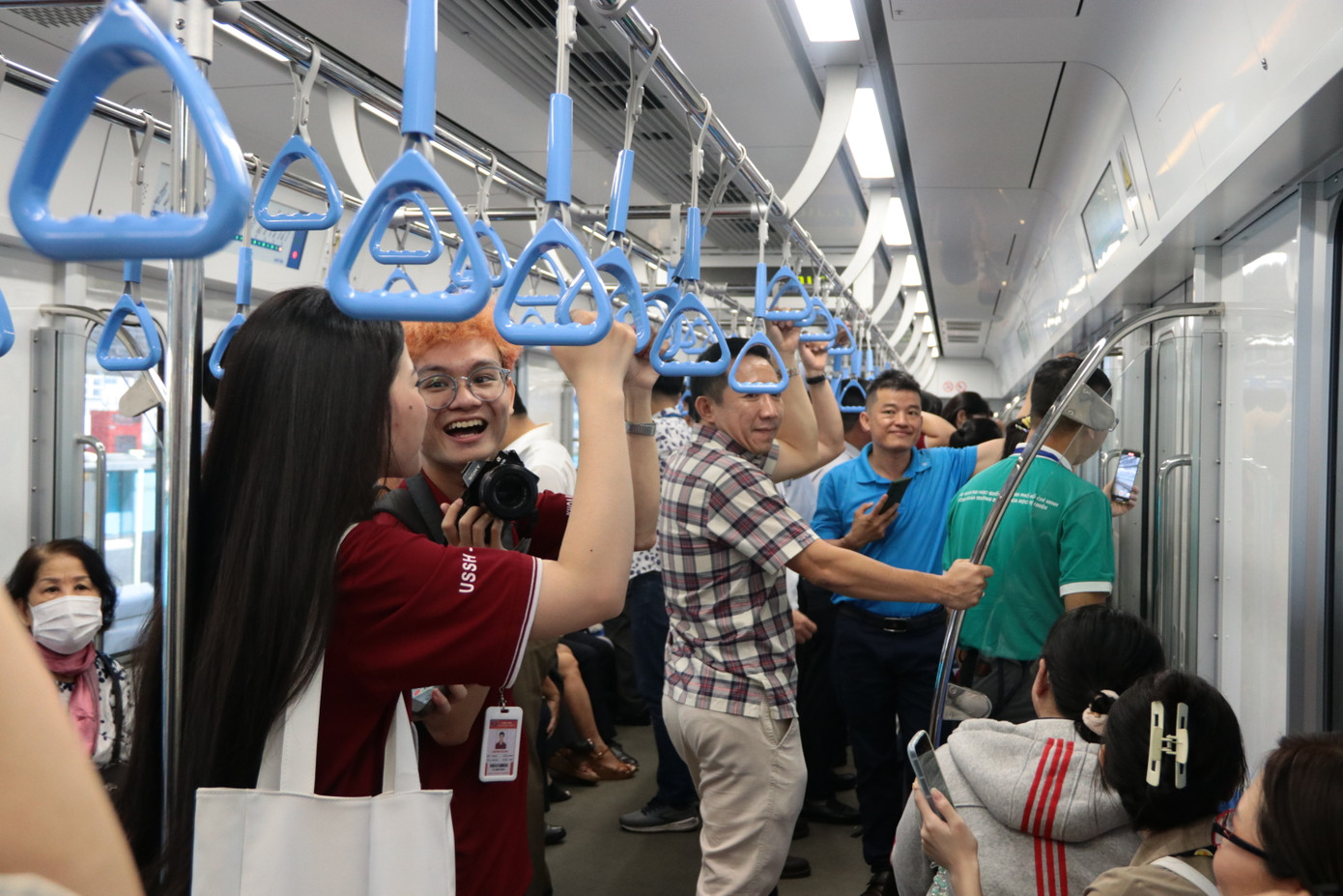 | Rất đông người dân và sinh viên trải nghiệm thử tàu điện Metro. |