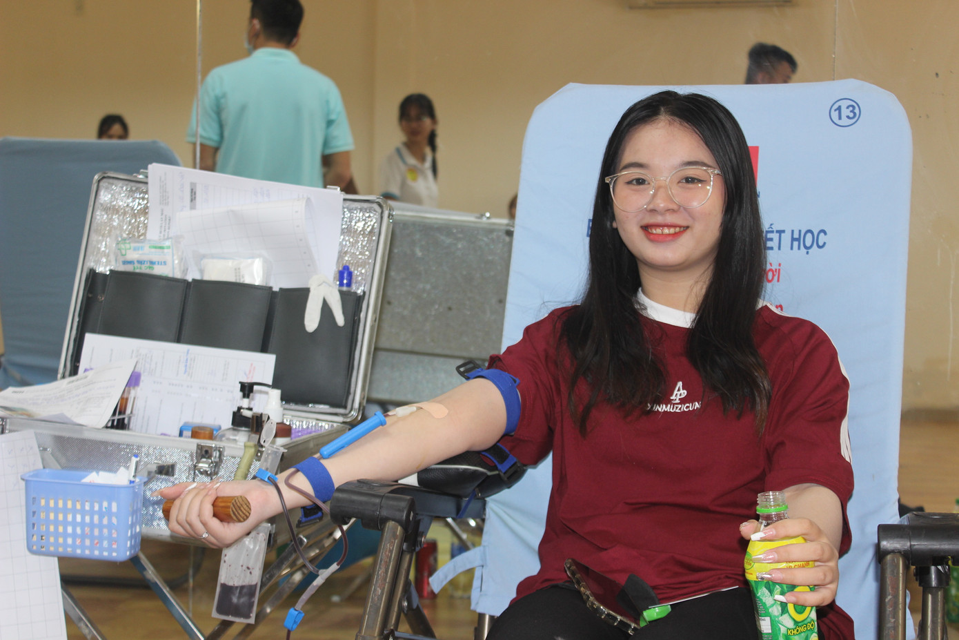 | Lần đầu tiên tham gia hiến máu, Lê Hoàng Tường Vy (sinh viên năm 2, trường CĐ Đại Việt Sài Gòn) chia sẻ: “Mình cảm nhận chương trình đúng nghĩa như một ngày hội. Các bạn học viên, sinh viên trường hăng hái tham gia hiến máu. Được góp những giọt máu của mình vào ngân hàng máu chung để phục vụ công tác cứu người mình rất hạnh phúc”. |