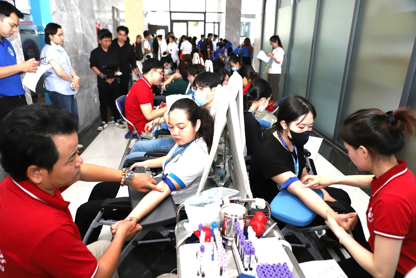 Ngay từ sáng sớm, có rất nhiều các bạn sinh viên, người lao động từ các cơ quan đoàn thể đã có mặt tại trường với tâm trạng háo hức để tham gia buổi hiến máu ý nghĩa này.