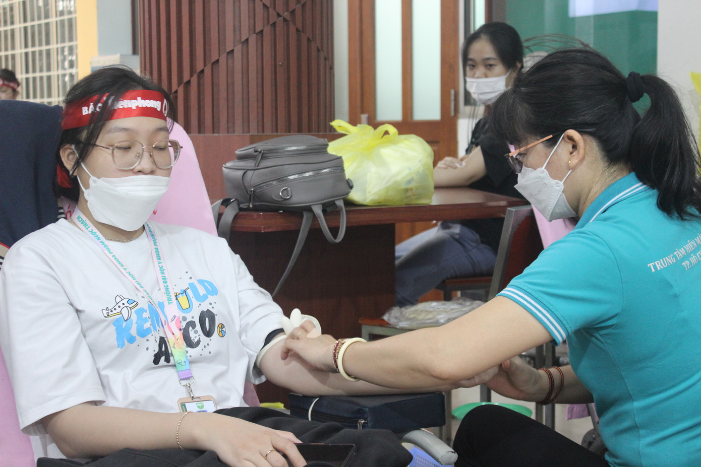 | Lần đầu tham gia hiến máu, Nguyễn Thị Thu Trang (sinh viên năm 4, khoa Điều dưỡng Kỹ thuật y học, trường ĐH Y khoa Phạm Ngọc Thạch) không tránh khỏi cảm giác lo lắng. Tuy nhiên, sau khi được các bác sĩ khám sàng lọc và tư vấn Thu Trang đã yên tâm hơn. “Sau lần này, mình sẽ tham gia hiến máu tiếp khi đủ thời gian và điều kiện. Mình cũng sẽ vận động bạn bè, người thân cùng tham gia”, Thu Trang chia sẻ. |