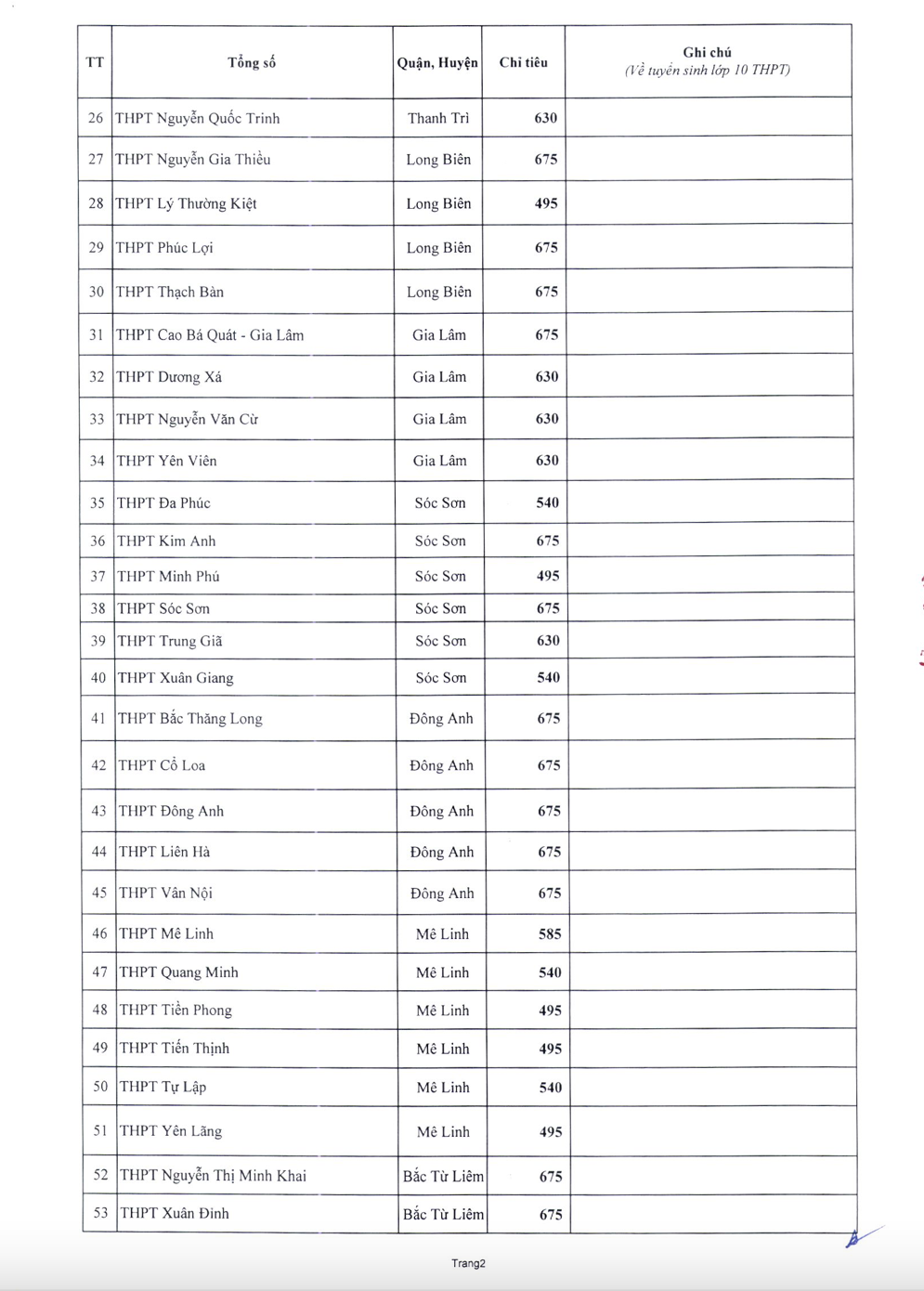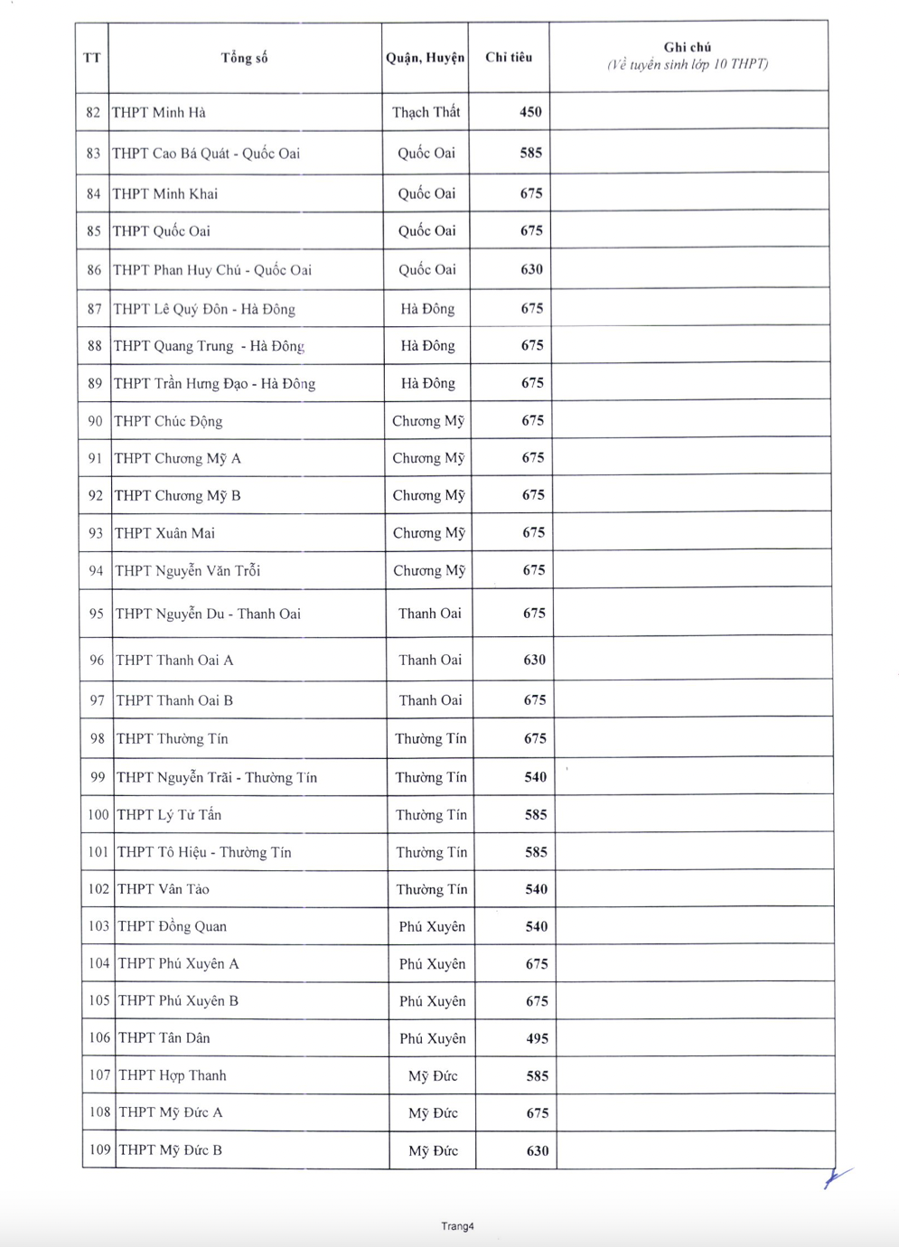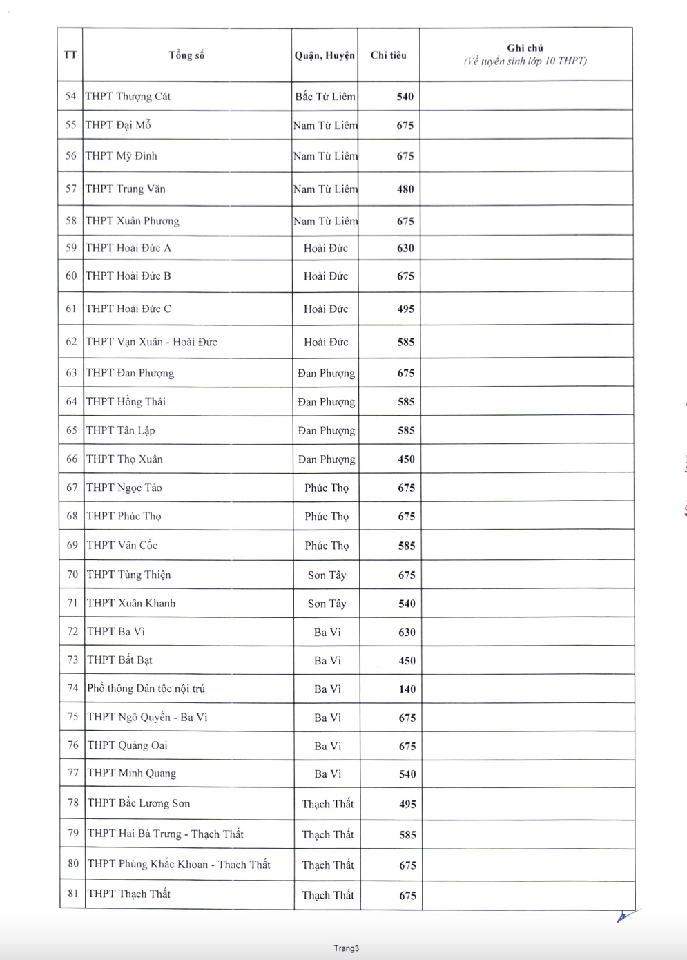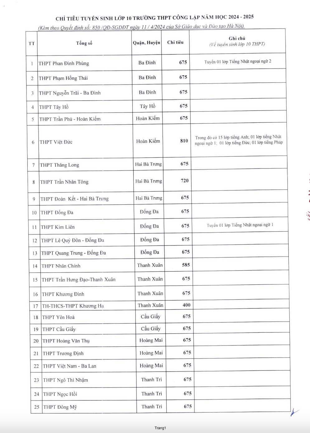 Năm học 2024-2025, Hà Nội tuyển sinh hơn 77.000 học sinh vào lớp 10 công lập, tổng chỉ tiêu tăng khoảng 1.000 nhưng ở nhiều quận nội thành lại giảm. Chỉ tiêu lớp 10 của 119 trường công lập ở Hà Nội như sau: