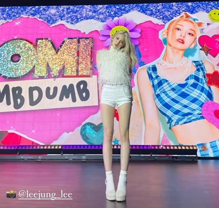Đôi chân Jeon Somi vô cùng nuột nà, đặc biệt phần đầu gối nhỏ nhắn càng giúp Somi tự tin diện đồ siêu ngắn, khoe trọn vóc dáng đẹp như mơ của mình.