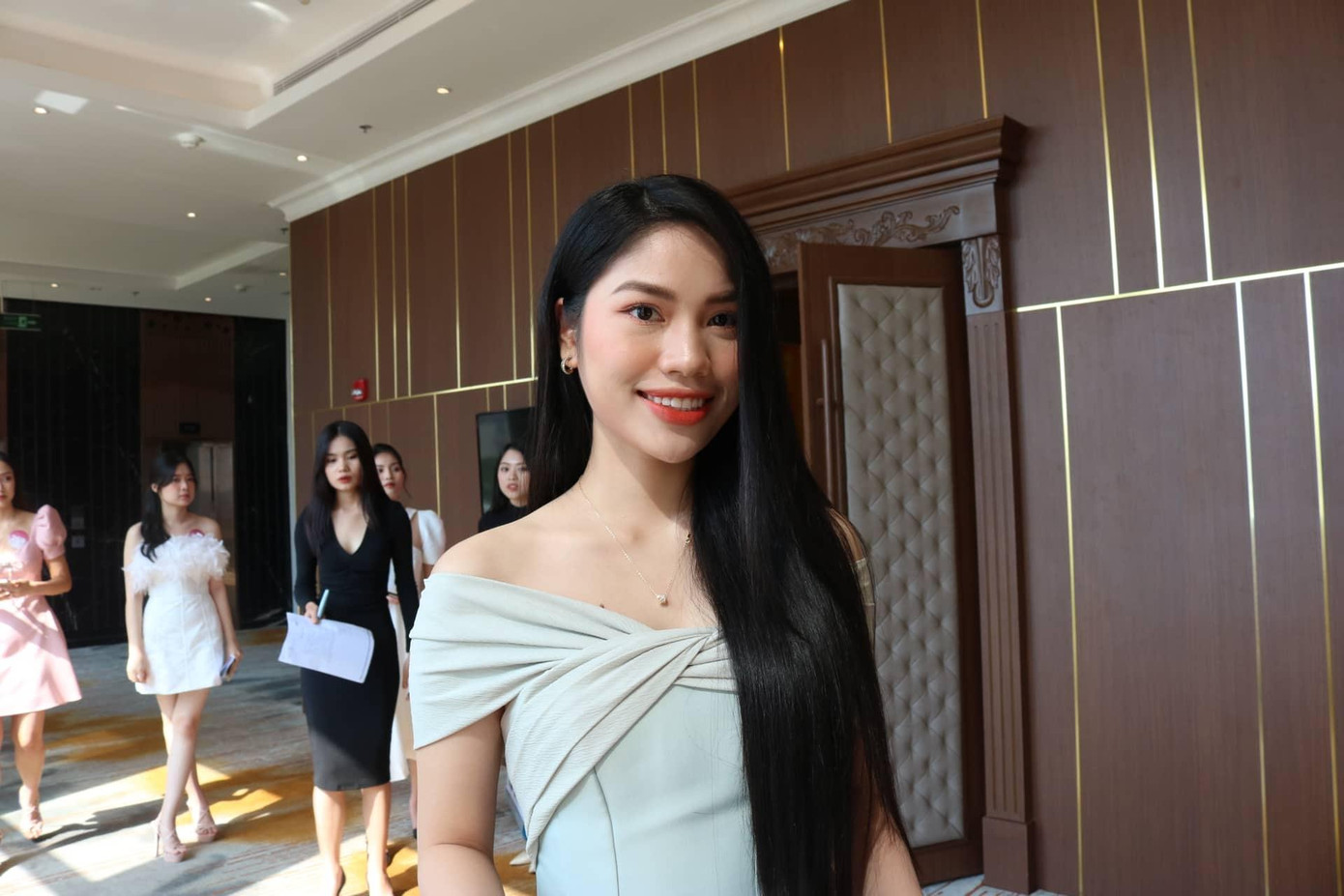 Thí sinh Trịnh Kim Chi lần đầu tiên tham gia một cuộc thi sắc đẹp lại bày tỏ sự phấn khích và vui mừng: "Mình thấy vui và phấn khích, có một chút hồi hộp trước khi phỏng vấn. Vì mình sẽ được gặp những người có chuyên môn cao, mình mong muốn được nói chuyện với họ".