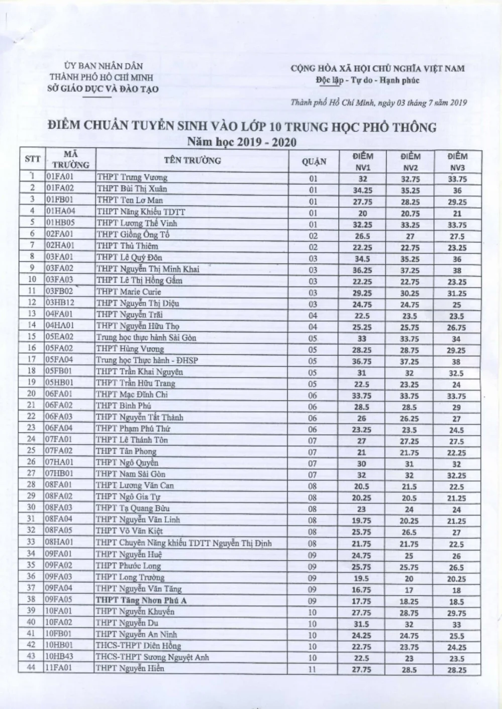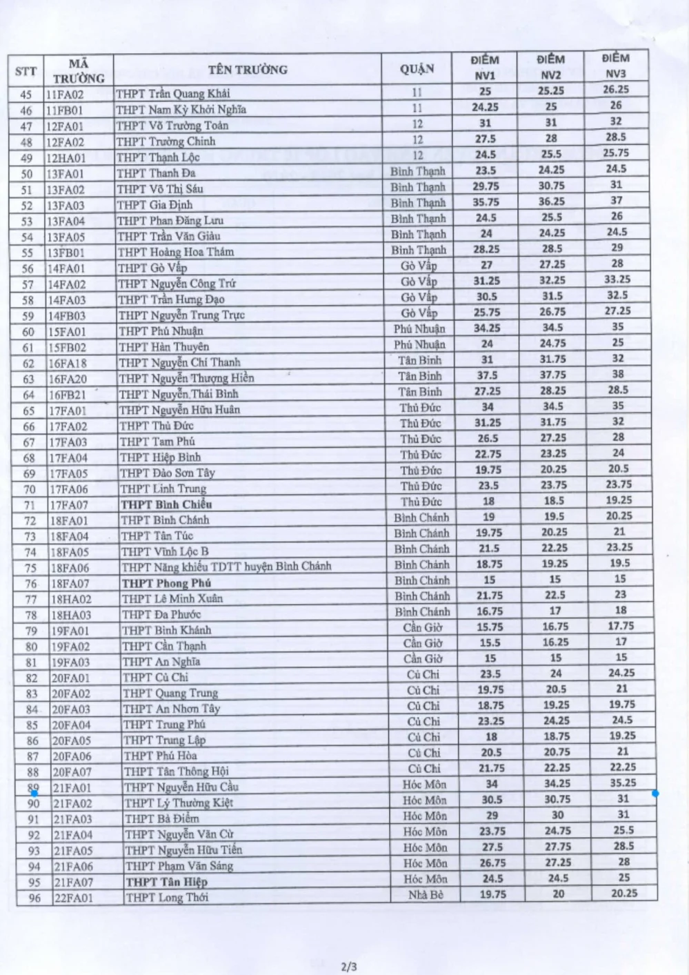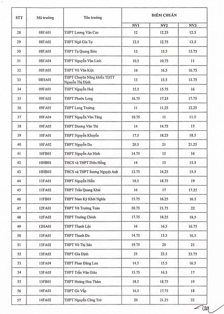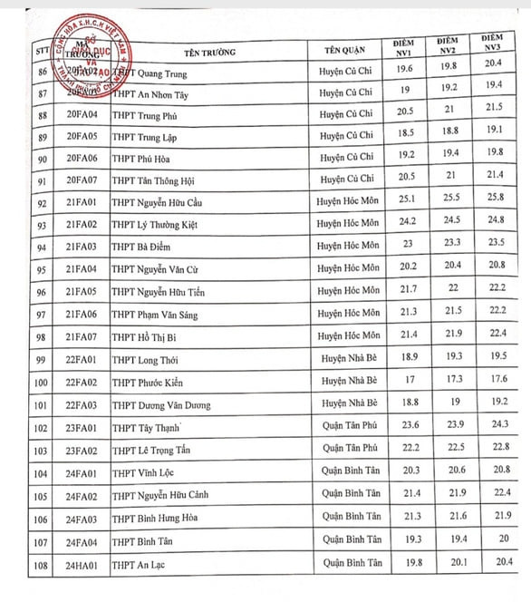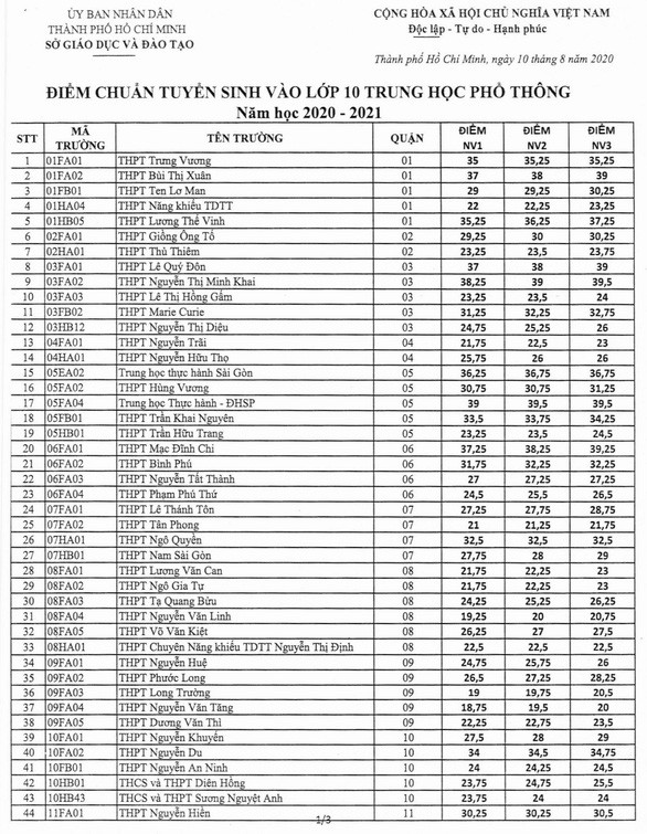 Dưới đây là điểm chuẩn ba nguyện vọng tuyển sinh vào lớp 10 tại TP.HCM trong 5 năm qua: