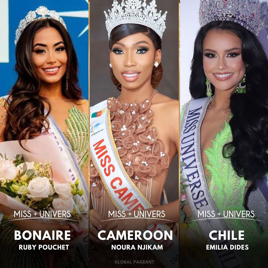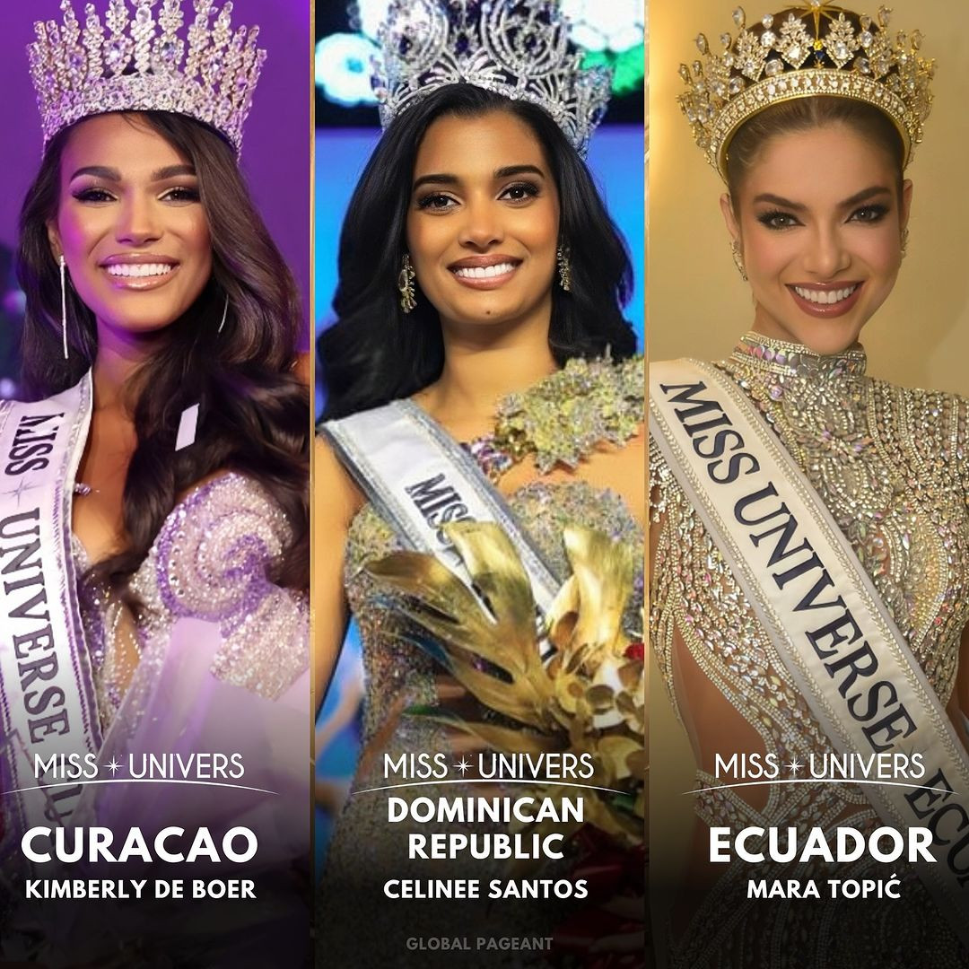 Từ trái qua phải: Hoa hậu Curacao (18 tuổi) - Hoa hậu Cộng hòa Dominica (24 tuổi, từng giành Á hậu 4 Miss International 2022) - Hoa hậu Ecuador (29 tuổi, từng lọt Top 10 Miss Grand International 2019).
