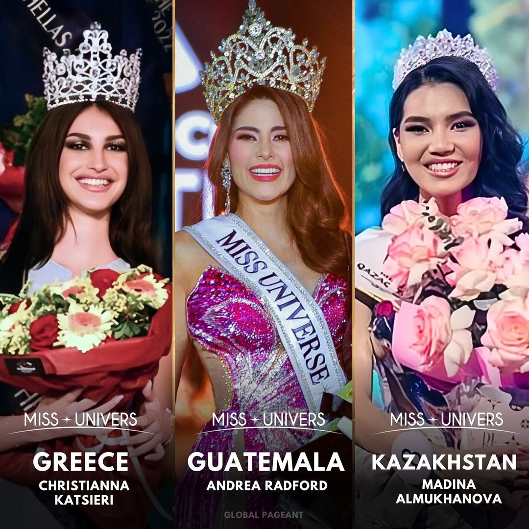 Từ trái qua phải: Hoa hậu Hy Lạp (22 tuổi) - Hoa hậu Guatemala (29 tuổi) - Hoa hậu Kazakhstan (23 tuổi).