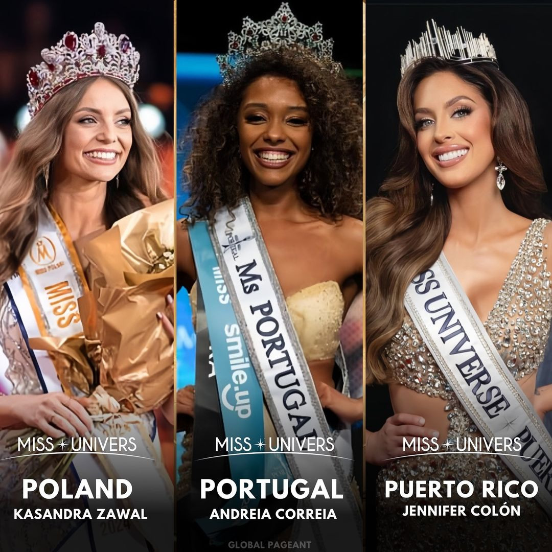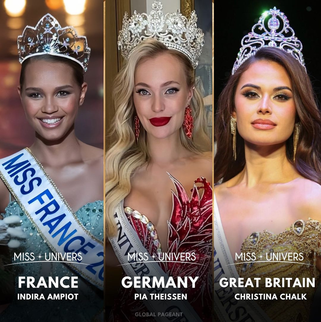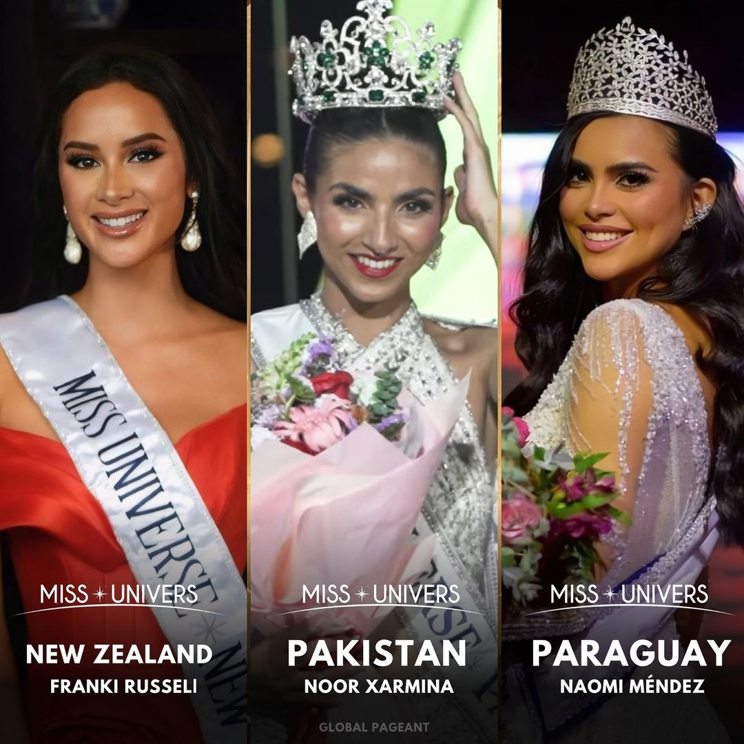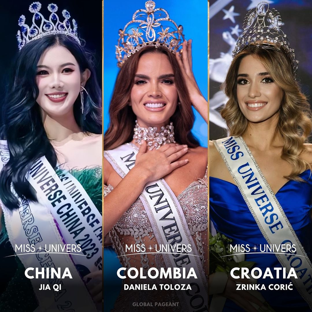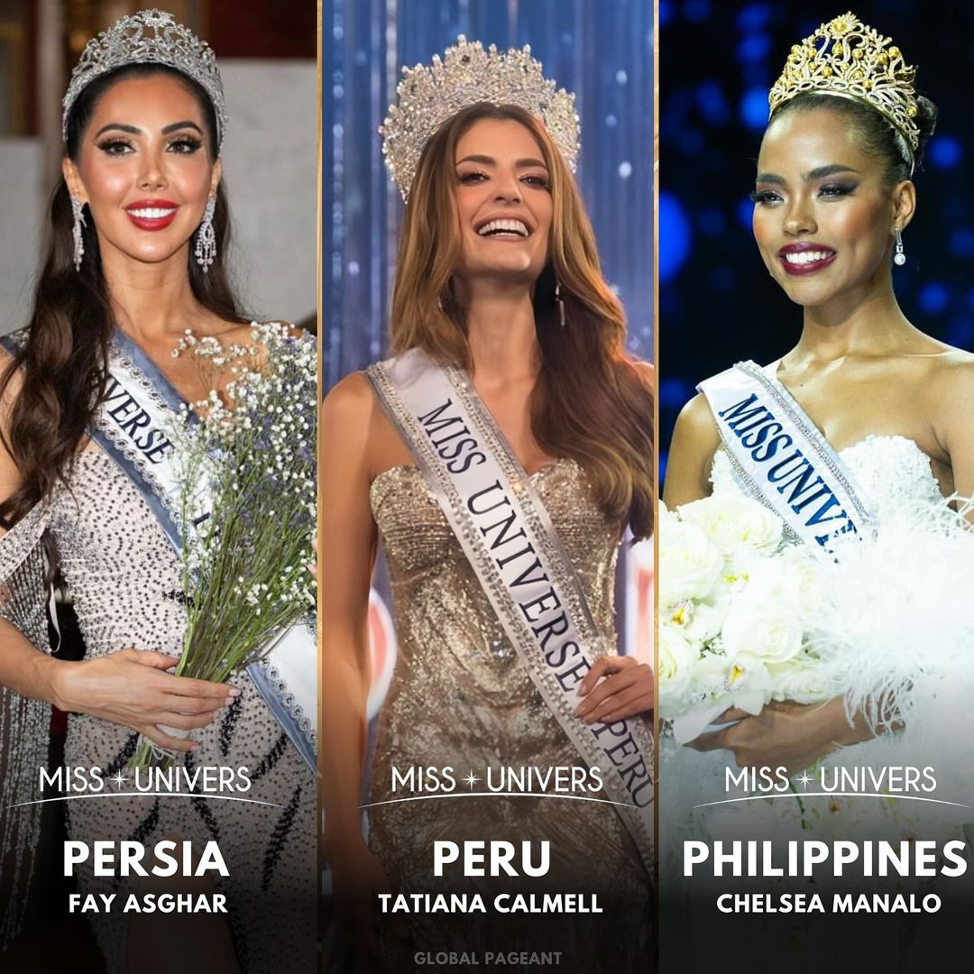 Từ trái qua phải: Hoa hậu Iran (31 tuổi) - Hoa hậu Peru (29 tuổi, từng giành Á hậu 2 Miss International 2022) - Hoa hậu Philippines (24 tuổi, được đánh giá là thí sinh mạnh của khu vực châu Á, có khả năng lọt Top 5 chung cuộc).