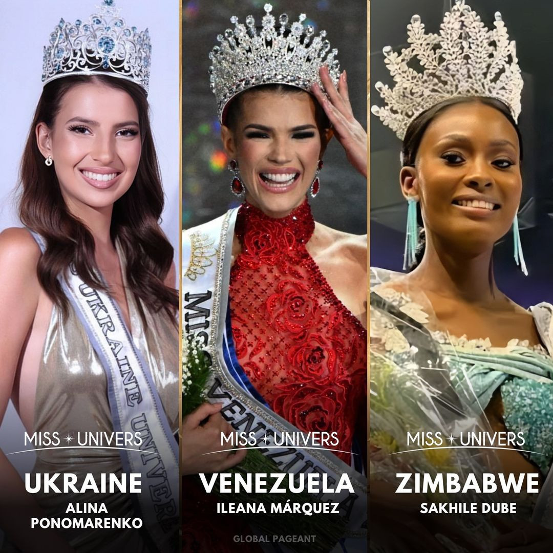 Từ trái qua phải: Hoa hậu Ukraina (20 tuổi) - Hoa hậu Venezuela (28 tuổi) - Hoa hậu Zimbabwe (27 tuổi).