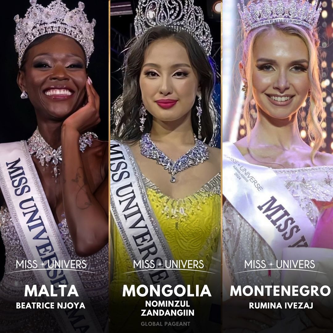 Từ trái qua phải: Hoa hậu Malta (39 tuổi) - Hoa hậu Mông Cổ (19 tuổi) - Hoa hậu Montenegro (19 tuổi).