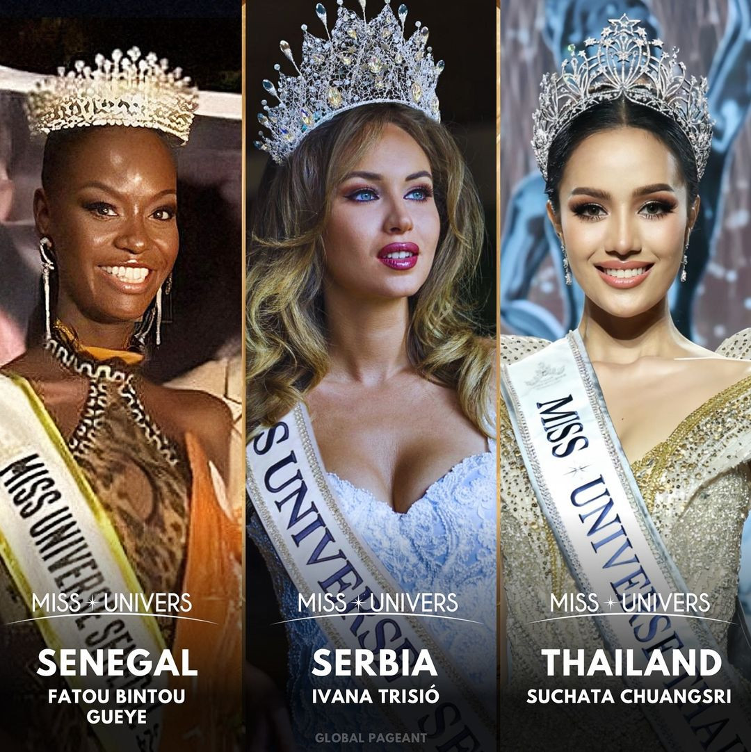 Từ trái qua phải: Hoa hậu Senegal (23 tuổi) - Hoa hậu Serbia (30 tuổi) - Hoa hậu Thái Lan (20 tuổi, được đánh giá là ứng viên sáng giá, có khả năng lọt Top 5 chung cuộc).
