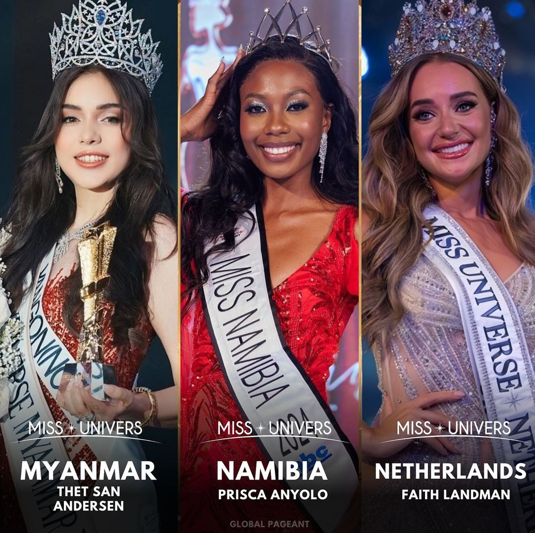 Từ trái qua phải: Hoa hậu Myanmar (24 tuổi) - Hoa hậu Namibia (24 tuổi) - Hoa hậu Hà Lan (27 tuổi).