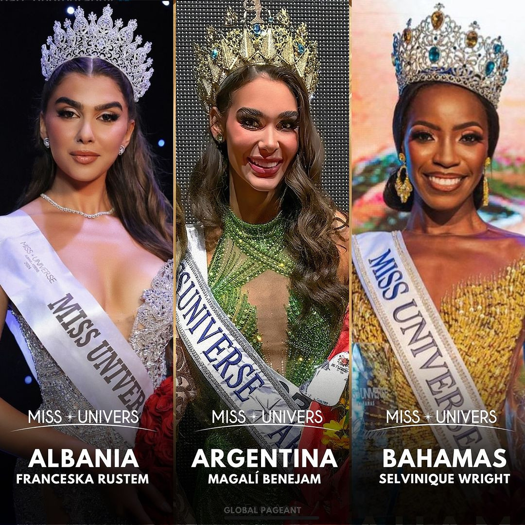 Từ trái qua phải: Hoa hậu Albania (19 tuổi) - Hoa hậu Argentina (29 tuổi) - Hoa hậu Bahamas (32 tuổi).