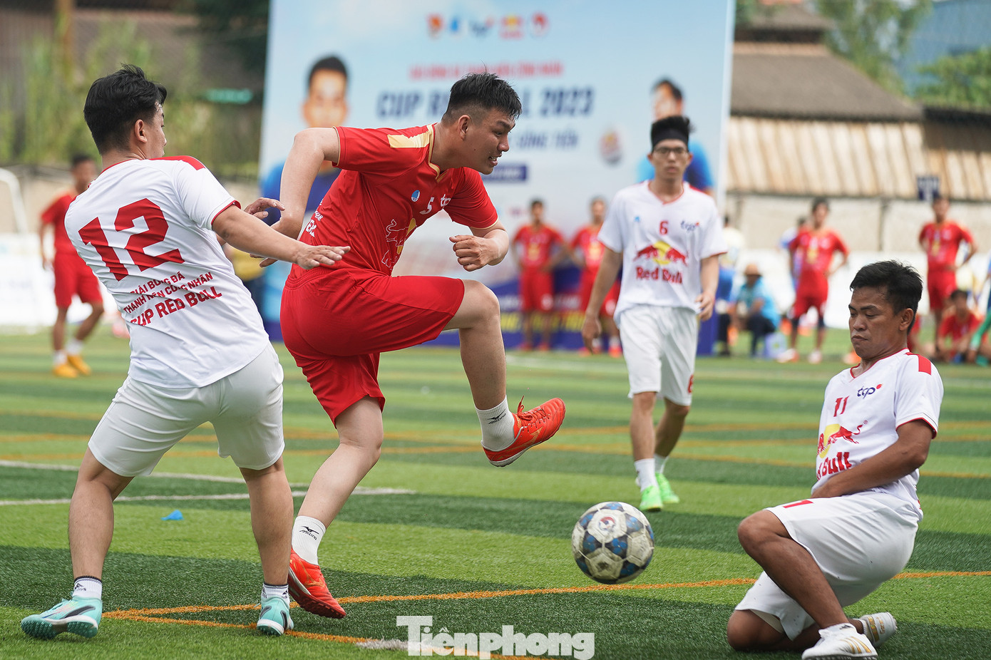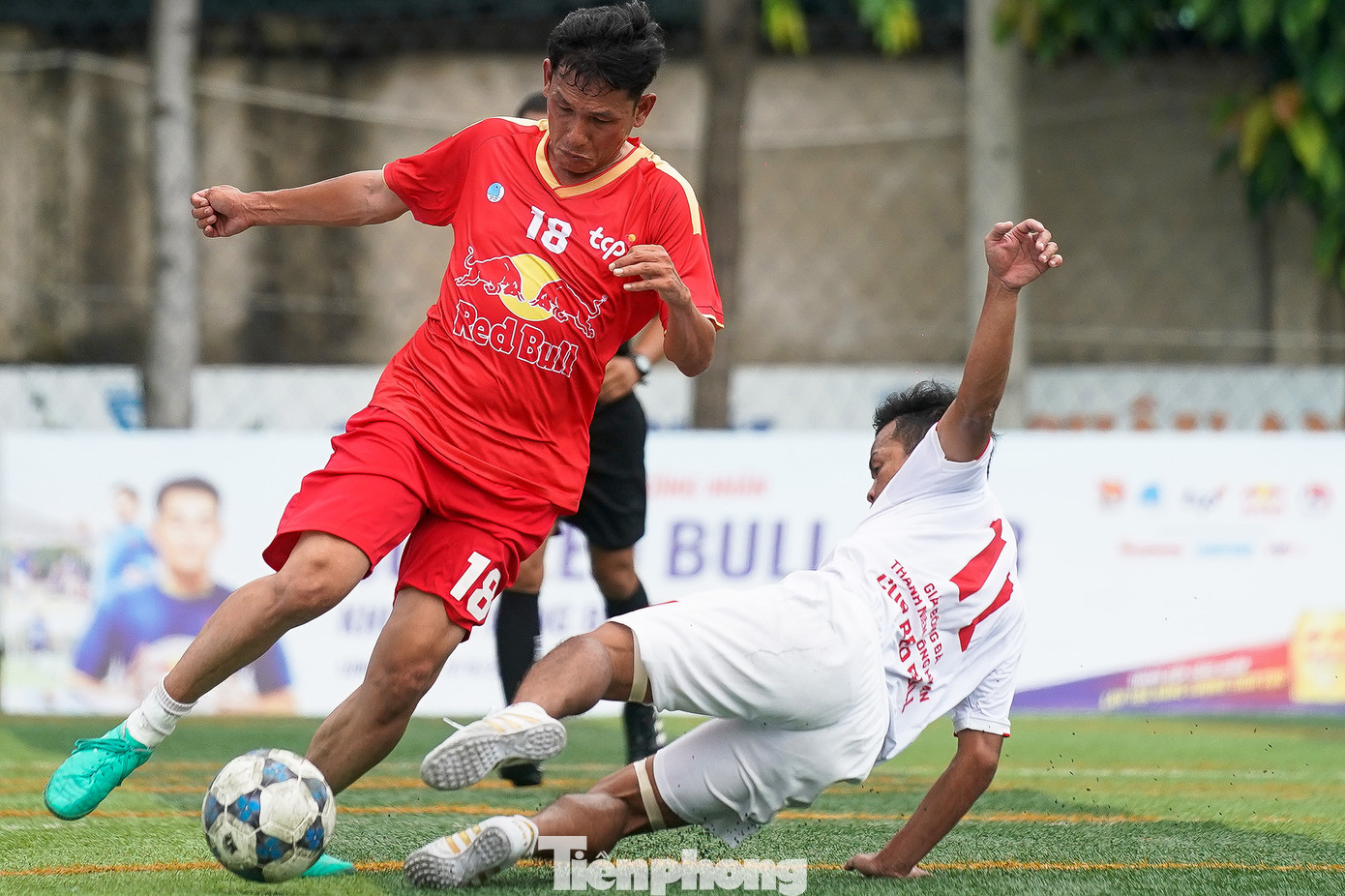 | Ngọc Thức có kỹ thuật khá tốt nên gần như "gánh team", chỉ huy cả đội thi đấu. Dễ nhận thấy phong cách thi đấu năng nổ, quyết liệt của anh công nhân khi tranh cướp bóng bay cả giày. |