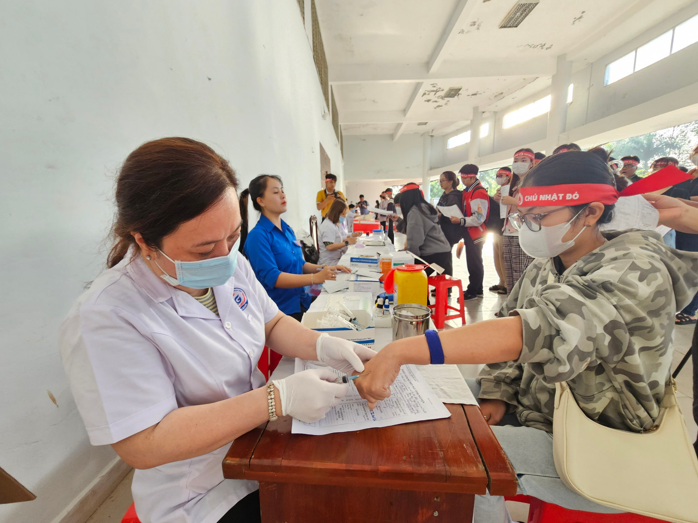 | Đông đảo bạn trẻ tham gia hiến máu tại chương trình Chủ Nhật Đỏ tại Kiên Giang sáng 27/1. |
