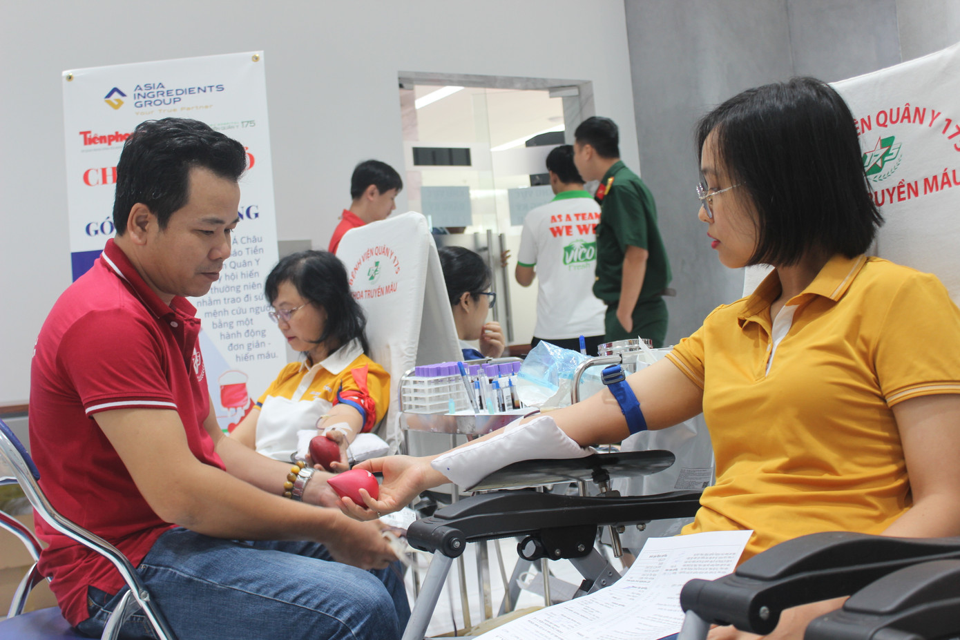 | Rất đông lãnh đạo, nhân viên Tập đoàn nguyên liệu Á Châu AIG tham gia hưởng ứng hiến máu tại Ngày hội. |
