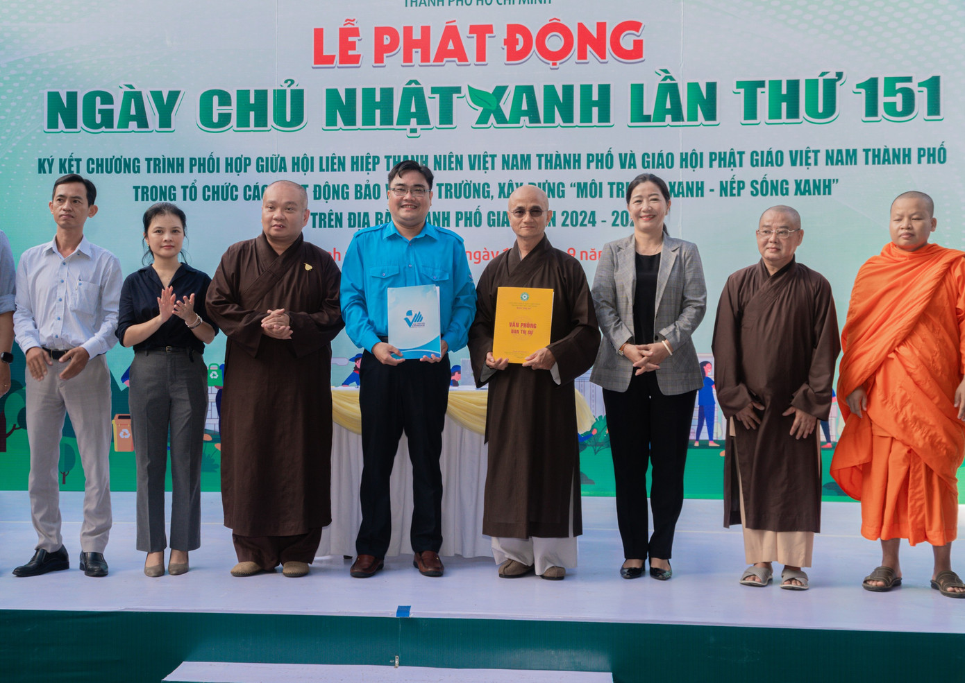 | Hội LHTN TP. HCM và Giáo Hội Phật giáo Việt Nam TP. HCM thực hiện ký kết phối hợp tổ chức các hoạt động bảo vệ môi trường. |