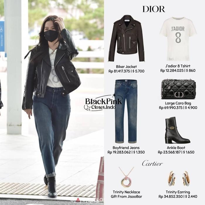 Chị cả Jisoo cũng mặc đồ của nhà mốt Dior, nhãn hàng mà cô làm đại sứ thương hiệu toàn cầu. Cô đeo trang sức của Cartier, mặc dù chưa trở thành đại sứ thương hiệu của nhãn hàng này, nhưng đây là việc được dự đoán chỉ là chuyện sớm muộn, vì trong khoảng 1 năm trở lại đây, Jisoo thường xuyên chỉ đeo trang sức và phụ kiện của Cartier.