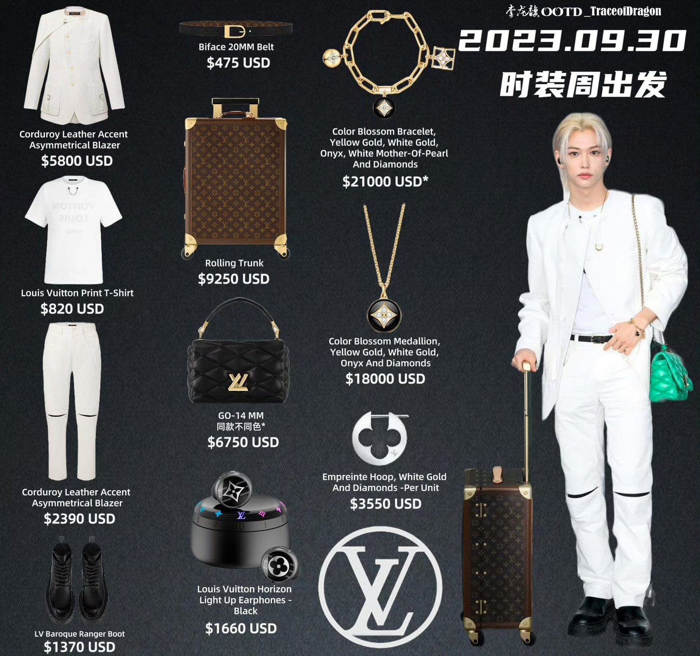 Felix (Stray Kids) mới đây vừa lập kỷ lục là nam nghệ sĩ K-Pop đầu tiên đại diện cho mảng thời trang nữ của nhà mốt Louis Vuitton. Nam idol xuất hiện với diện mạo nổi bật, mái tóc trắng cùng bộ outfit có giá trị lên tới 100 triệu won (khoảng 1,8 tỷ đồng) tại sân bay.