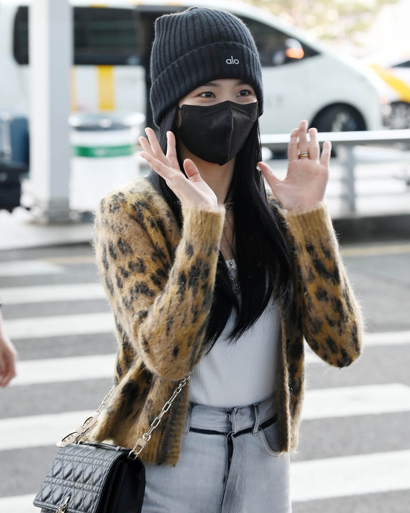 | Jisoo BLACKPINK mặc áo khoác lông họa tiết da báo kết hợp cùng túi xách Miss Dior khởi hành sang Pháp tham dự show diễn của nhà Dior. |
